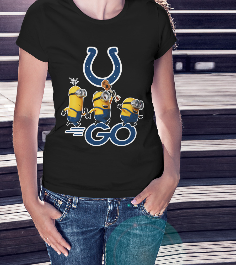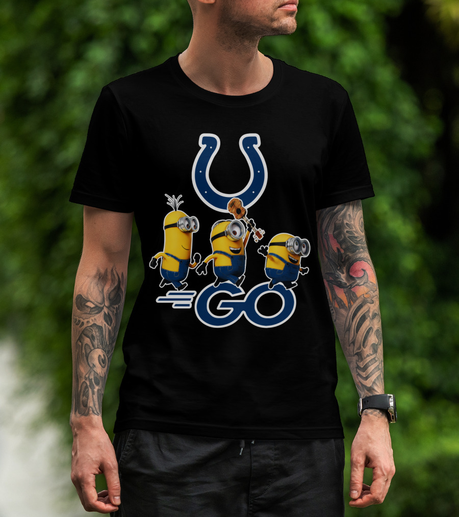 The Minions Go Colts Football Fan Fun T-shirt is designed for everyday wear and a consistent fit. Fabric is pre-shrunk ring-spun cotton with durable stitching. See the size chart below for exact measurements.