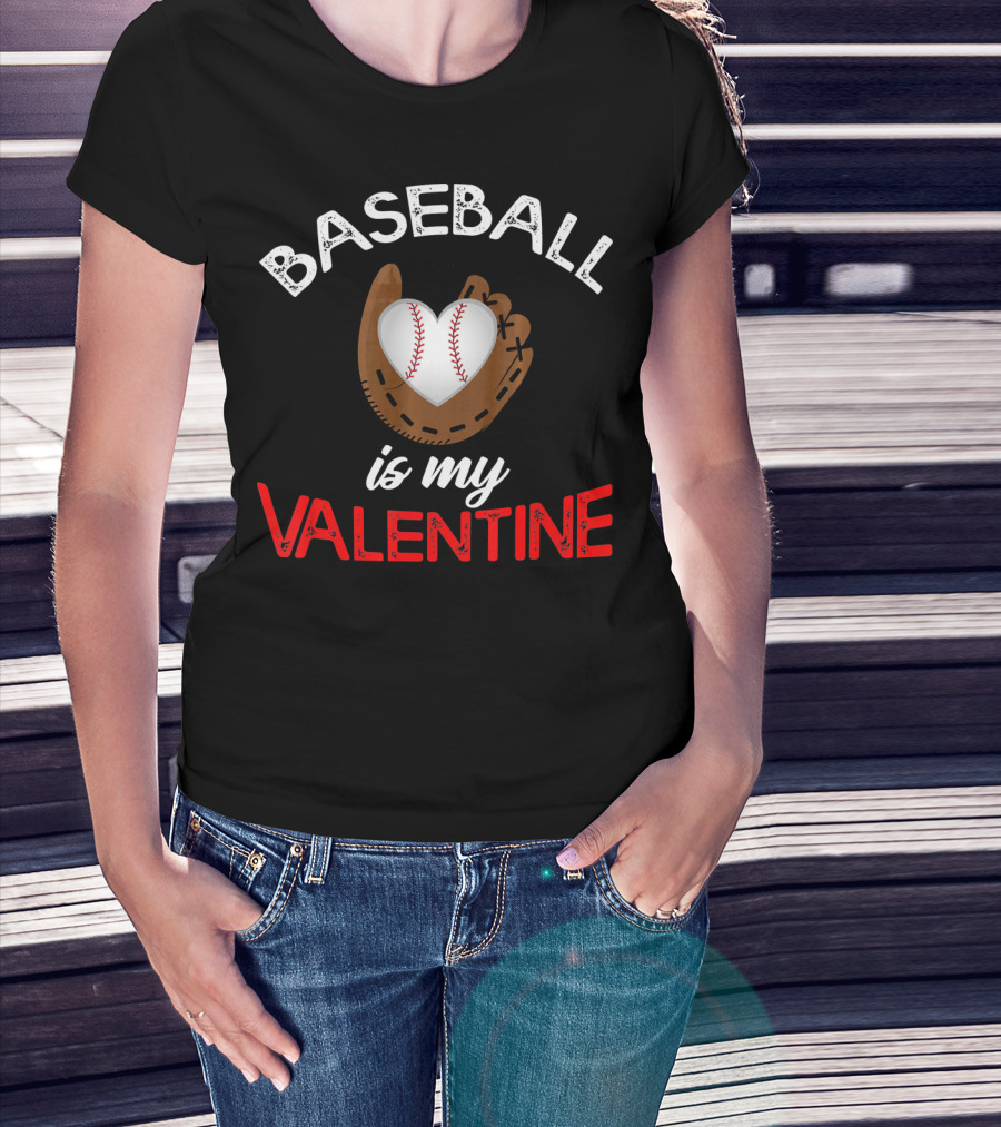 Baseball Is My Valentine Valentin Baseball Mitt Heart T-Shirt