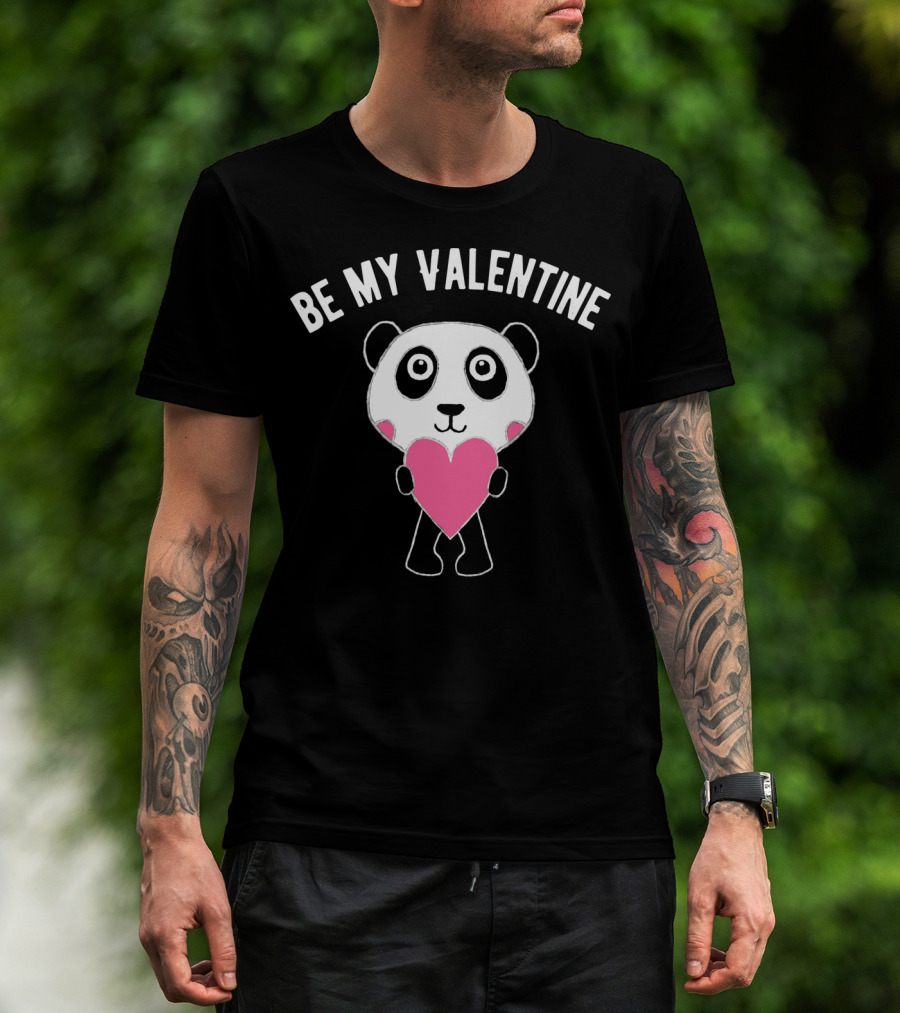 The Be My Valentine Panda Holding Heart T-shirt is designed for everyday wear and a consistent fit. Fabric is pre-shrunk ring-spun cotton with durable stitching. See the size chart below for exact measurements.