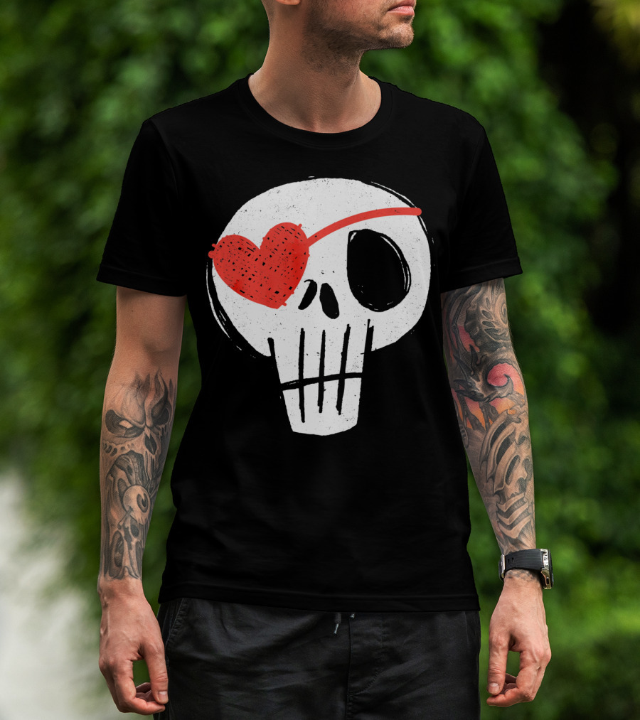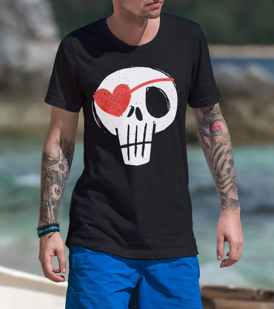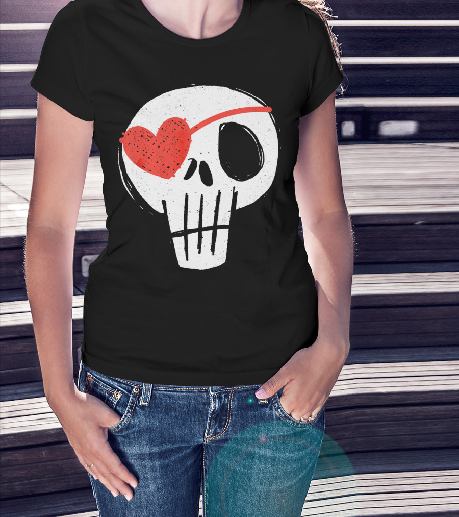 Skull With Heart Eye Patch Valentine's Day Kids T-Shirt