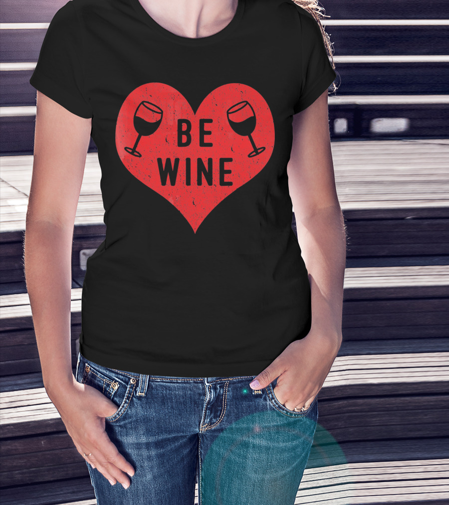 The Be Wine Heart Valentine Win Funny Valentines Day T-shirt is designed for everyday wear and a consistent fit. Fabric is pre-shrunk ring-spun cotton with durable stitching. See the size chart below for exact measurements.