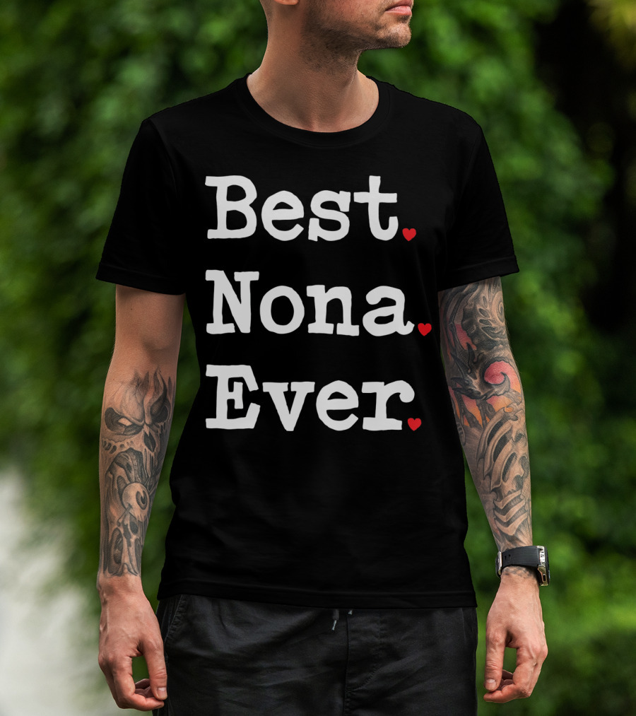 The Best Nona Ever Valentin Hearts T-shirt is designed for everyday wear and a consistent fit. Fabric is pre-shrunk ring-spun cotton with durable stitching. See the size chart below for exact measurements.