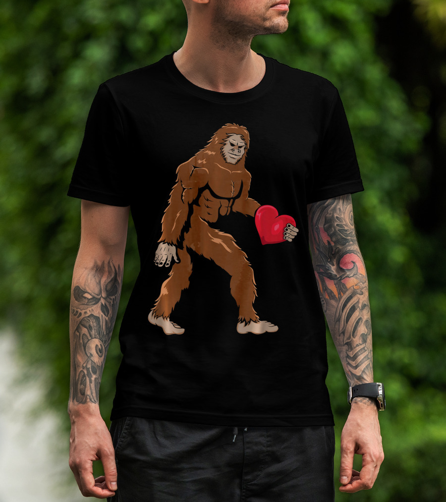 Bigfoot Holding Heart Sasquatch Valentines Day T-Shirt