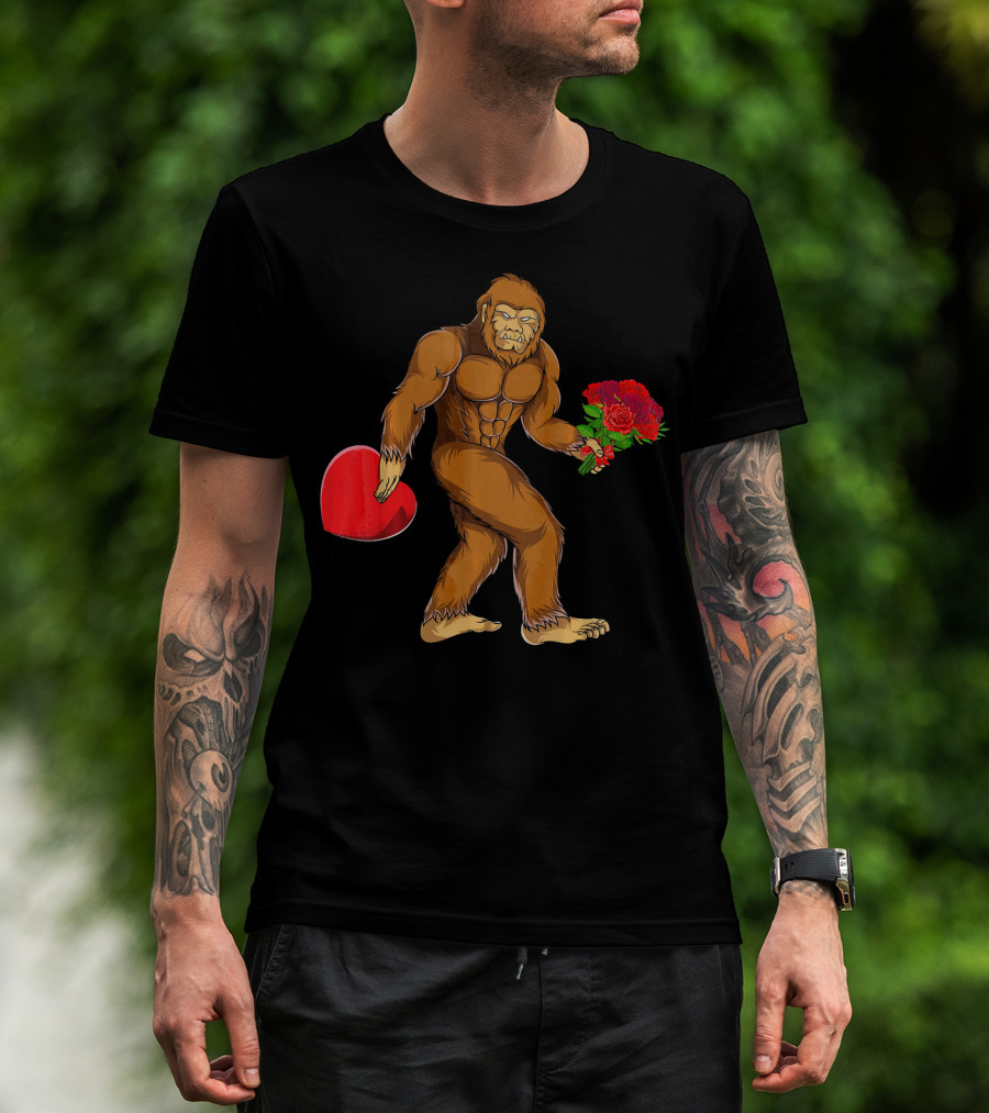 Bigfoot Heart Valentines Day Flowers T-Shirt