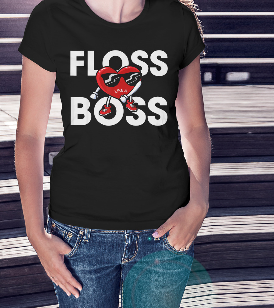 Floss Like A Boss Boys Valentines Day Kids Heart T-Shirt