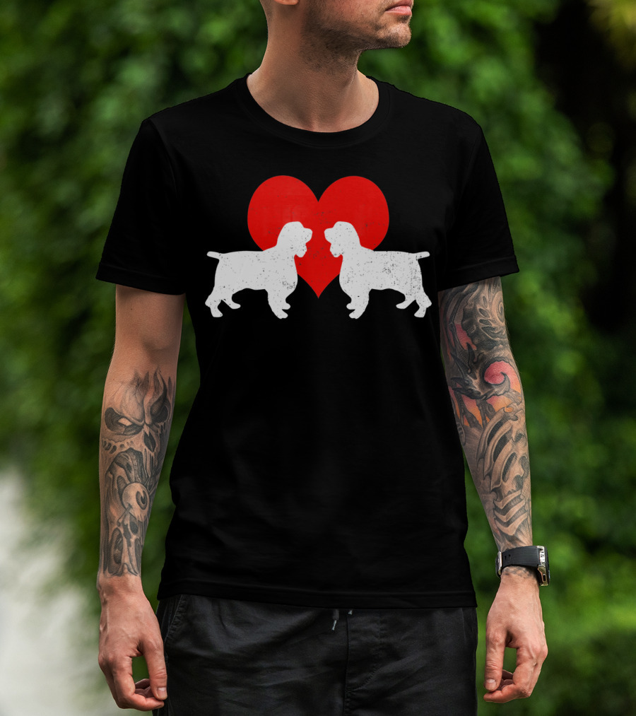 Couple English Springer Spaniel Dogs With Red Heart T-Shirt