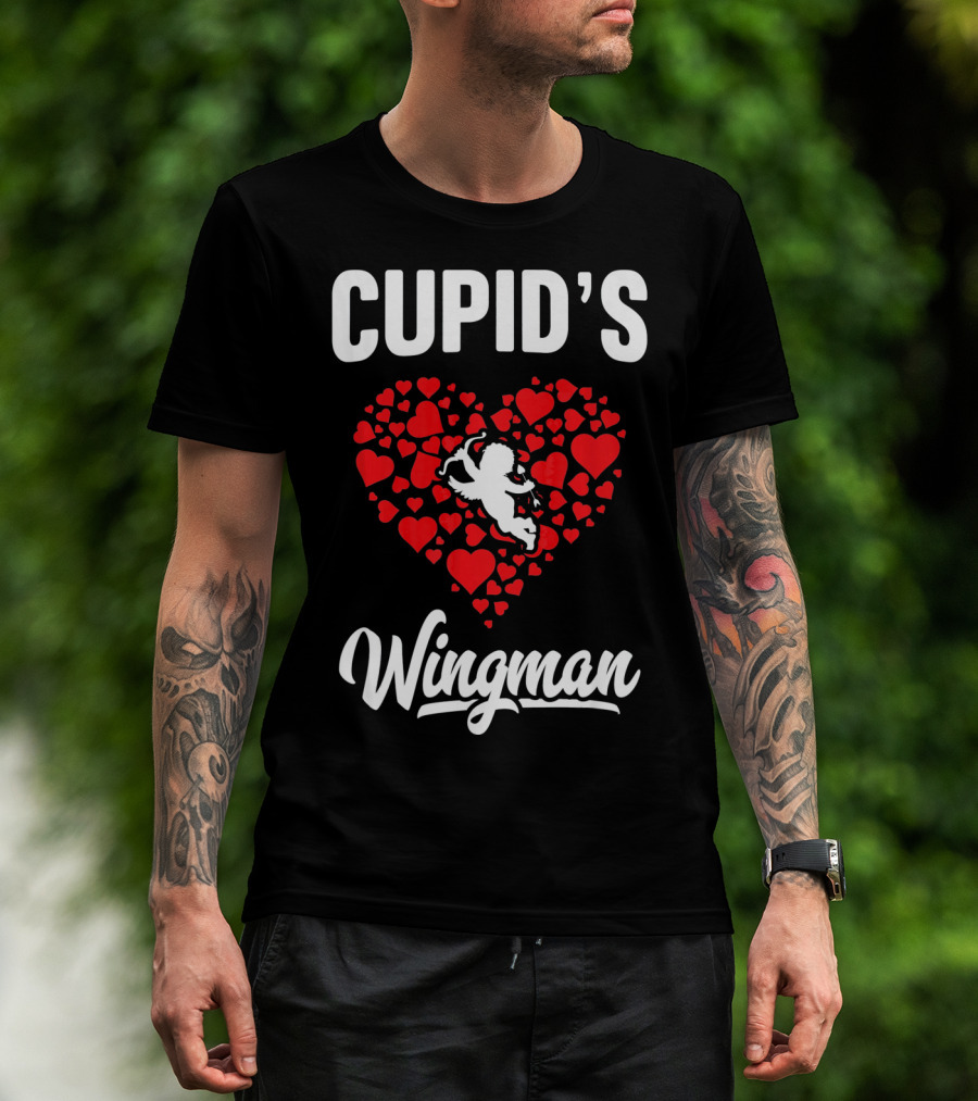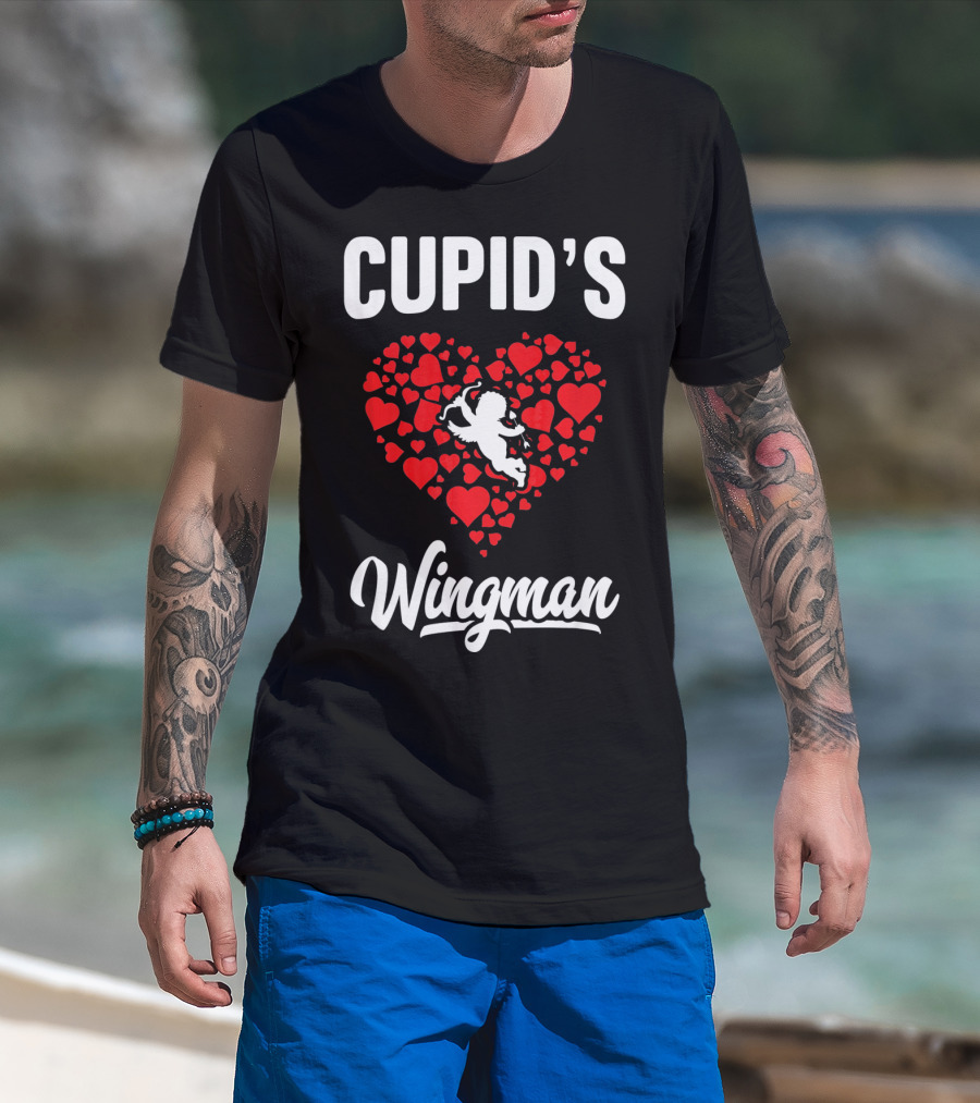 Cupid's Wingman Funny Kids Valentines Day Heart And Cherub T-Shirt