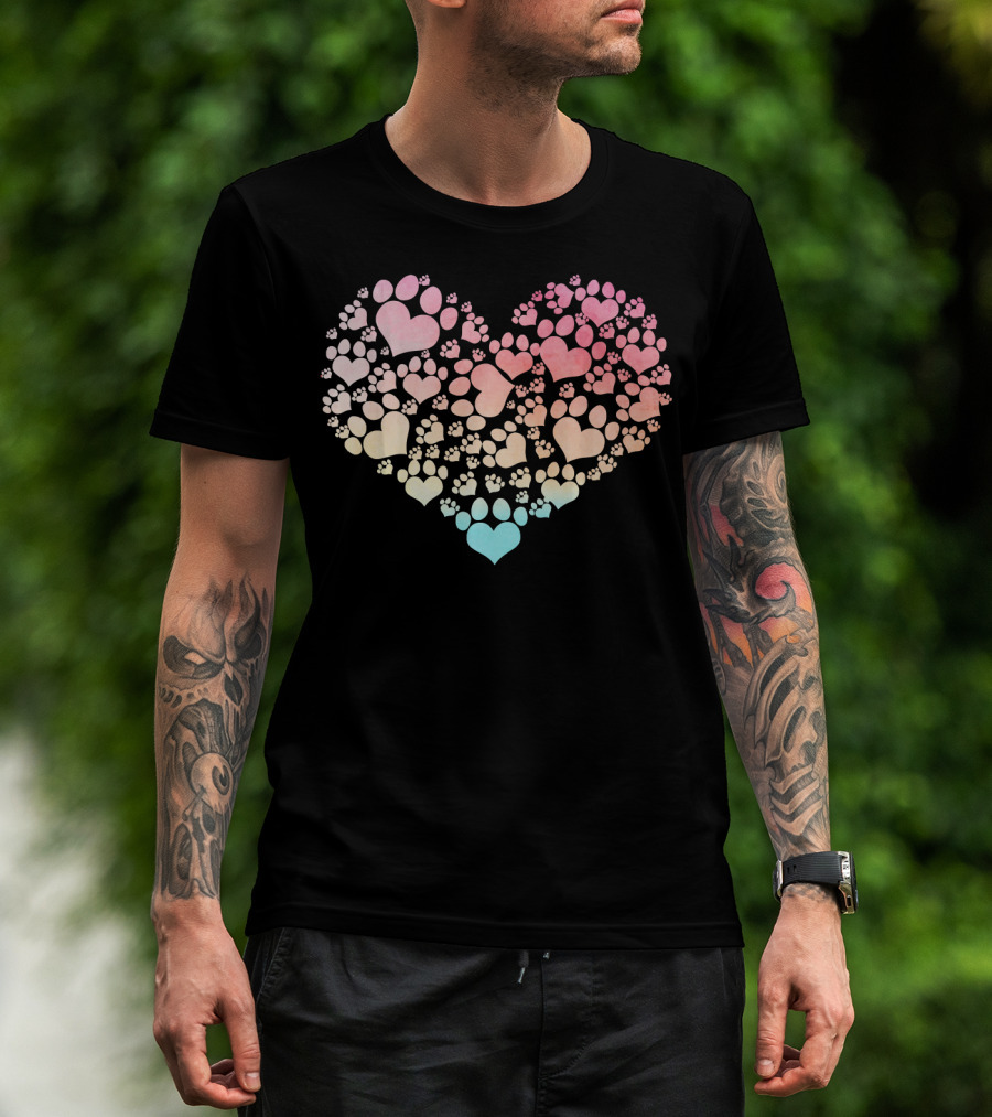 Valentine Heart Made Of Cute Dog Paw Prints T-Shirt