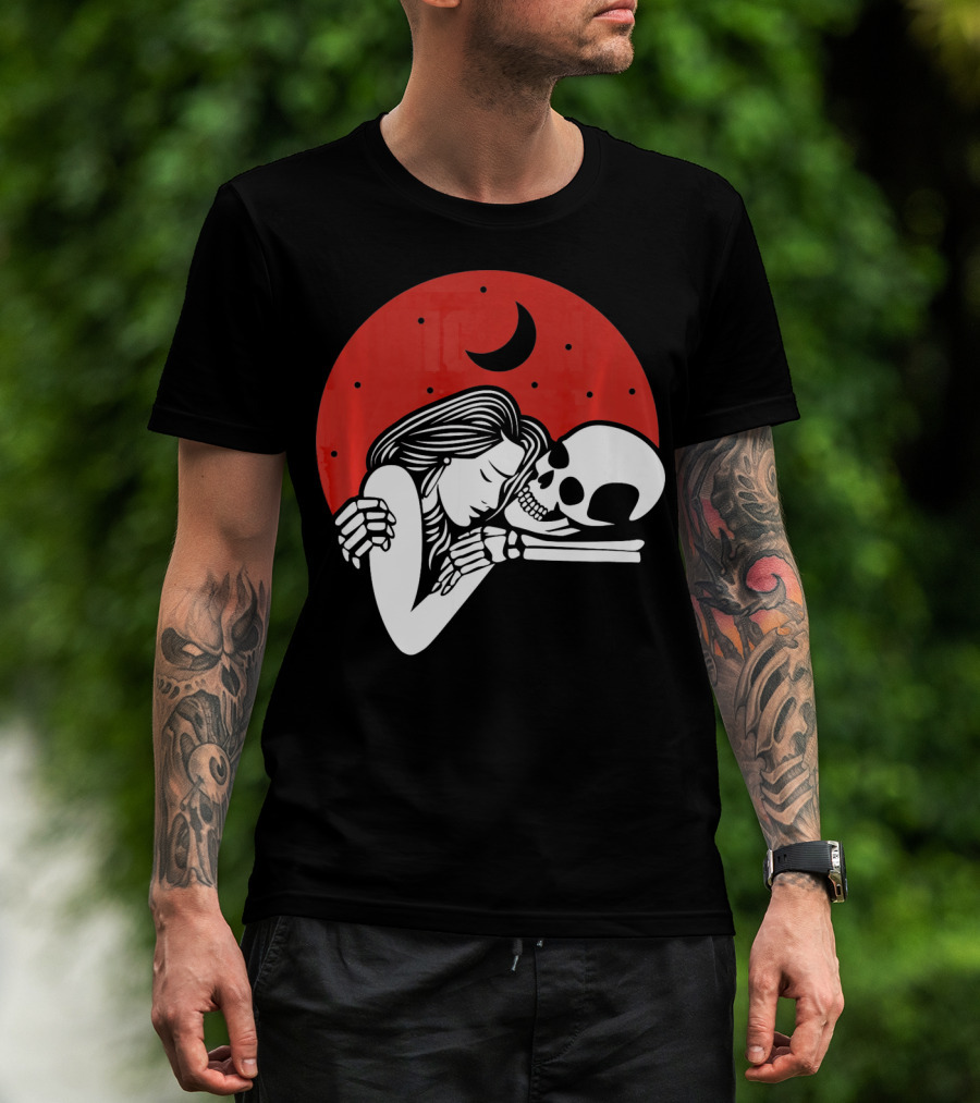 Cute Skeleton Romantic Valentines Moon Embrace T-Shirt