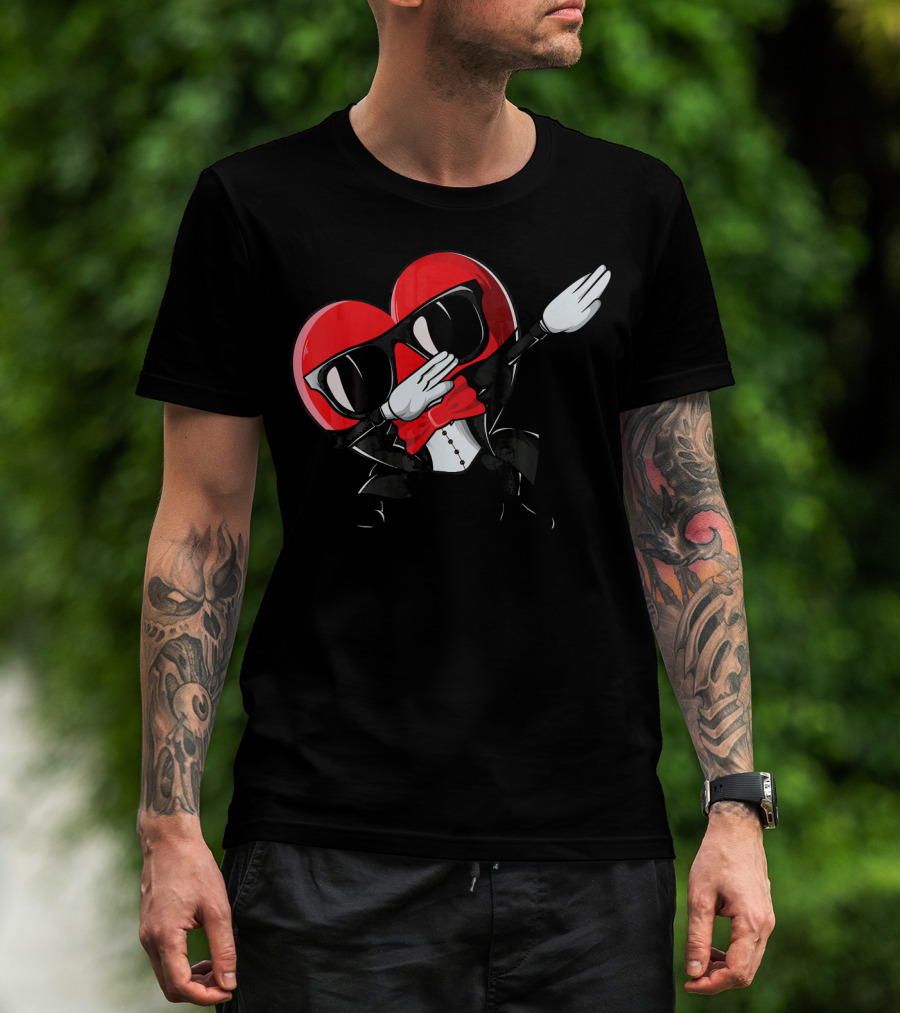 Valentines Day Heart Character Dabbing With Sunglasses And Bow Tie For T-Shirt