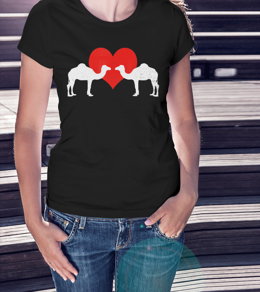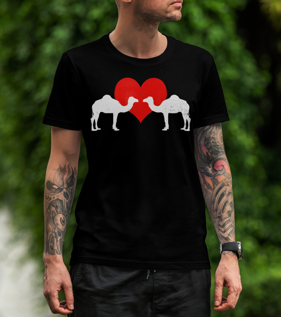 The Valentines Day Camels with Heart T-shirt is designed for everyday wear and a consistent fit. Fabric is pre-shrunk ring-spun cotton with durable stitching. See the size chart below for exact measurements.