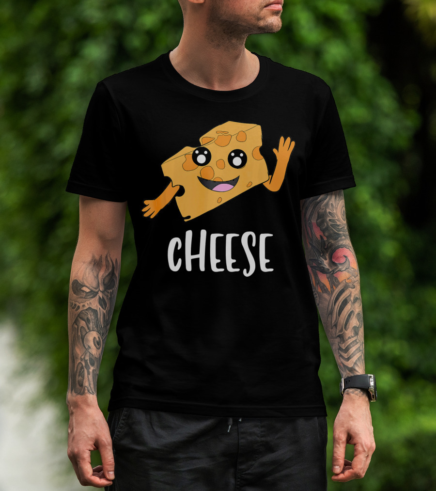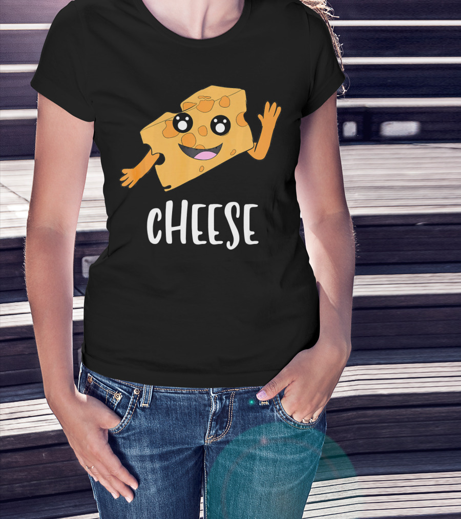 CHEESE Smiling Cartoon Cheese With Happy Face And Waving Arms T-Shirt