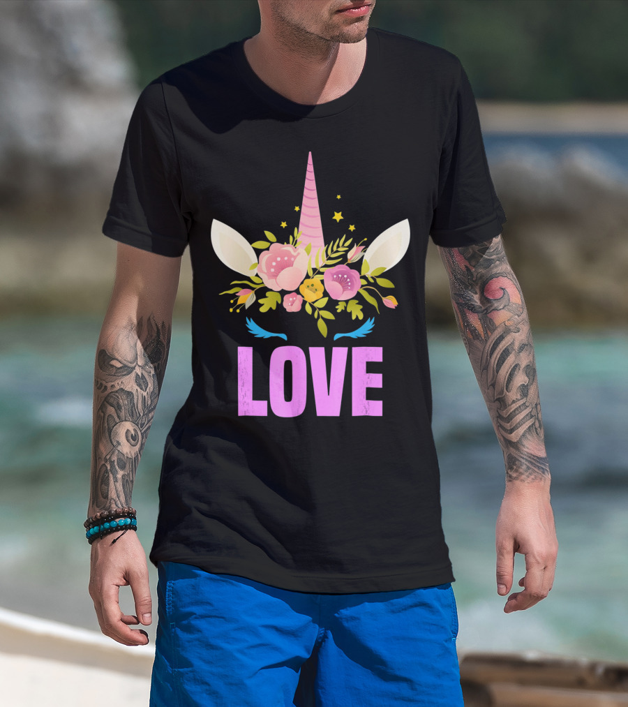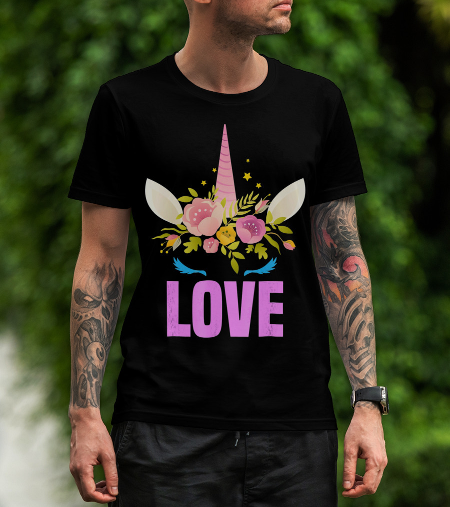Love Cute Unicorn Face Valentine Day T-Shirt