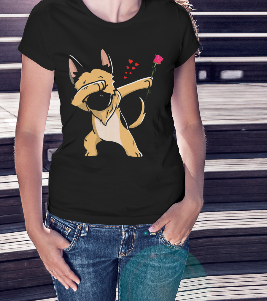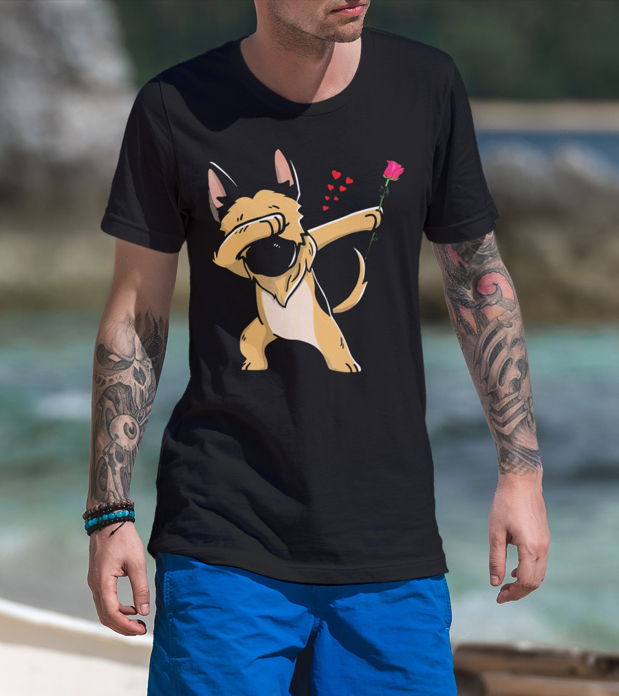 Dabbing German Shepherd With Rose And Hearts Valentines T-Shirt