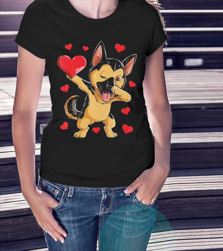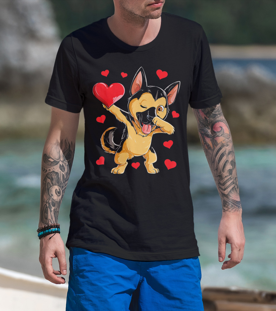 Valentines Day Dabbing German Shepherd With Hearts T-Shirt