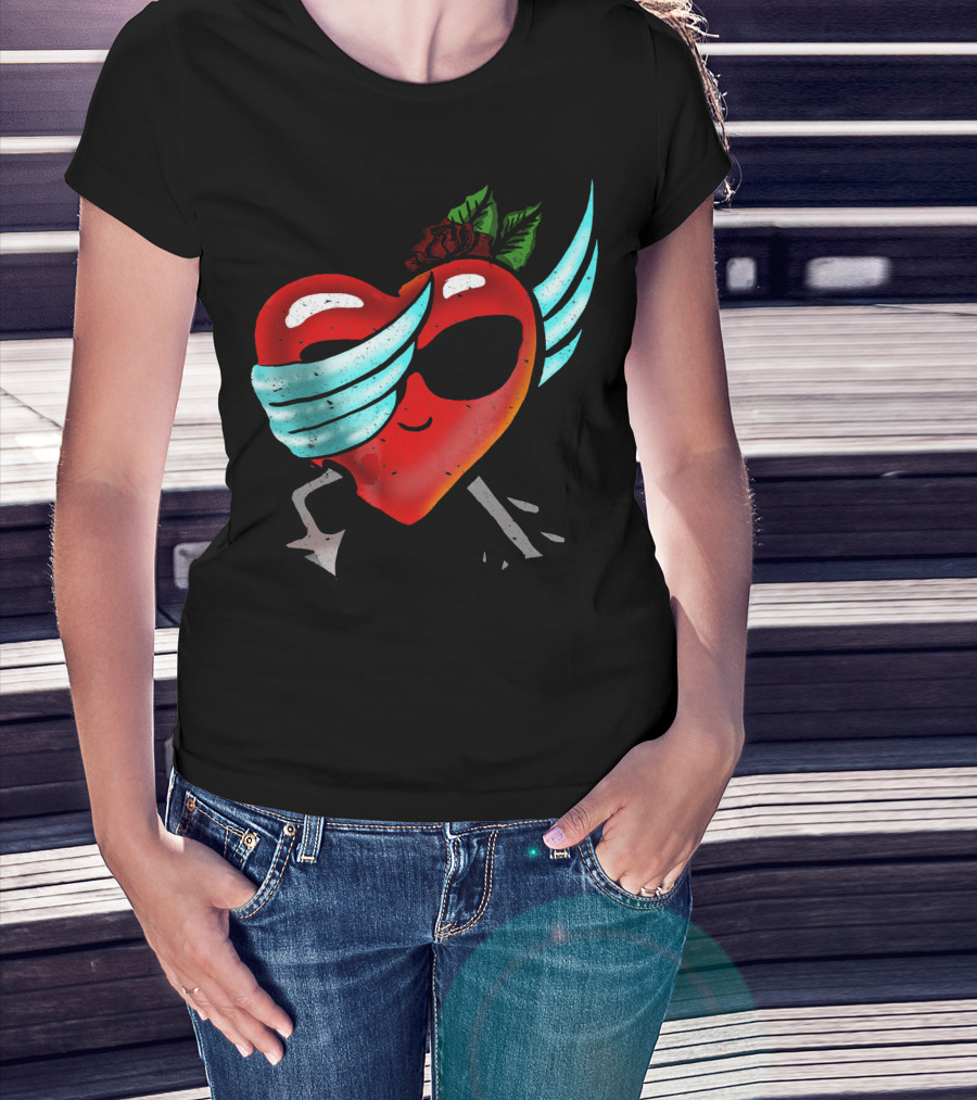 The Playful Dabbing Heart with Wings Funny Valentines Day T-shirt is designed for everyday wear and a consistent fit. Fabric is pre-shrunk ring-spun cotton with durable stitching. See the size chart below for exact measurements.