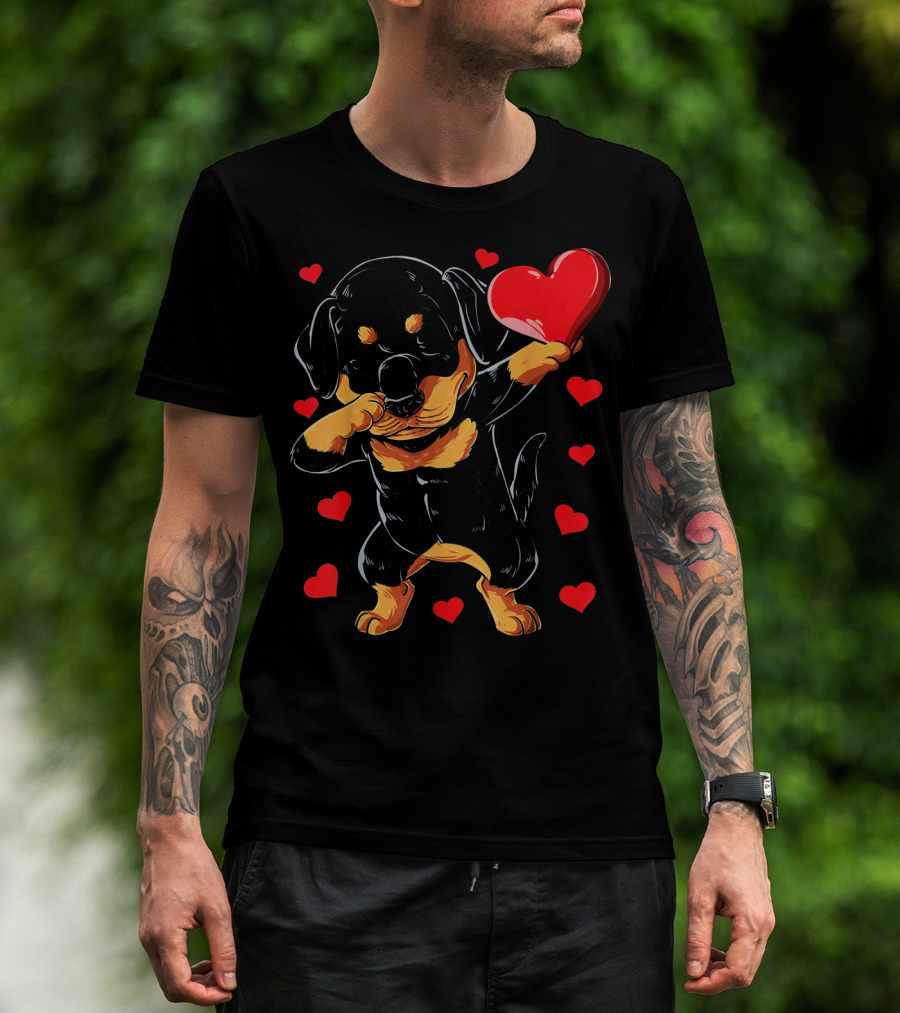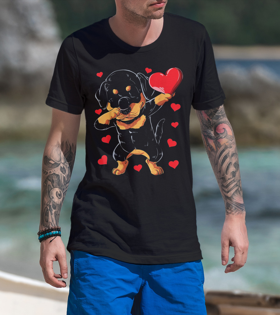 Dabbing Rottweiler Heart Valentine With Red Hearts T-Shirt