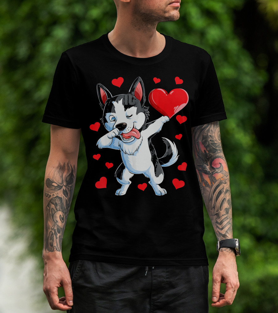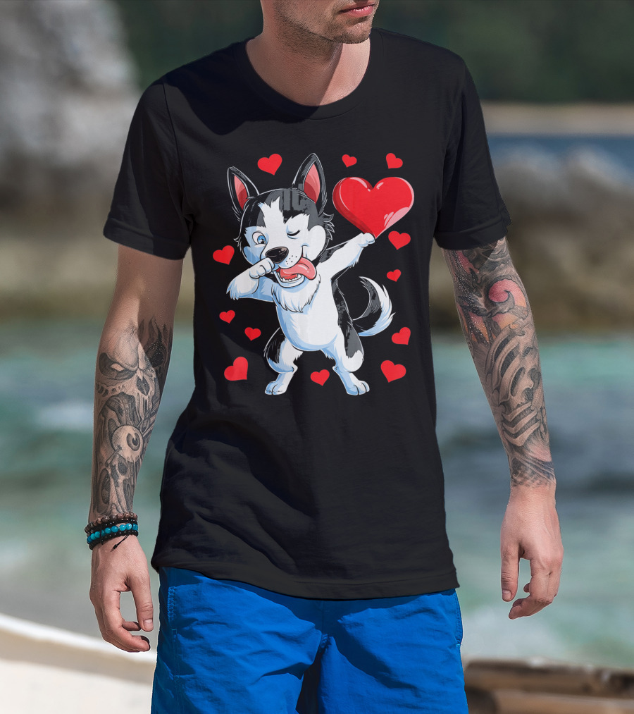Siberian Husky Dabbing Valentine Heart Fun T-Shirt