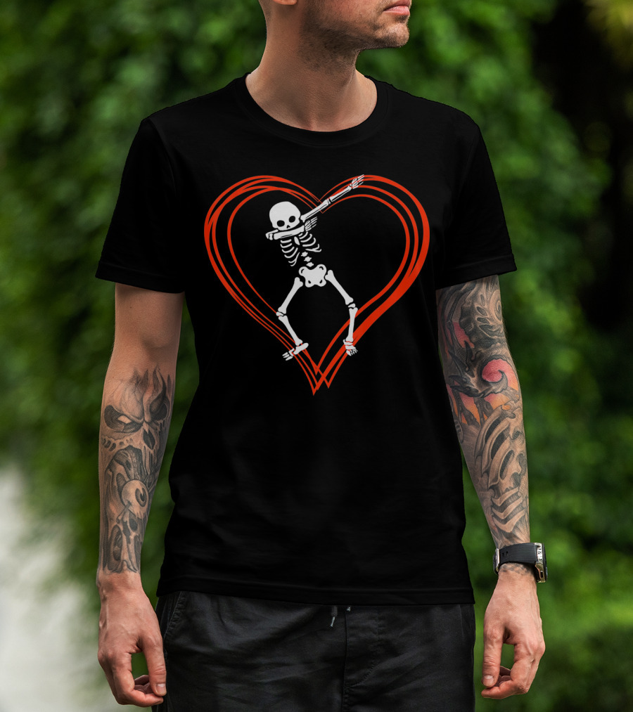 Dabbing Skeleton Dab Skull Heart Valentine Day T-Shirt
