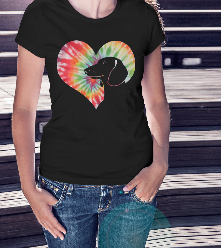 Dachshund Dog Heart Tie Dye Valentines T-Shirt