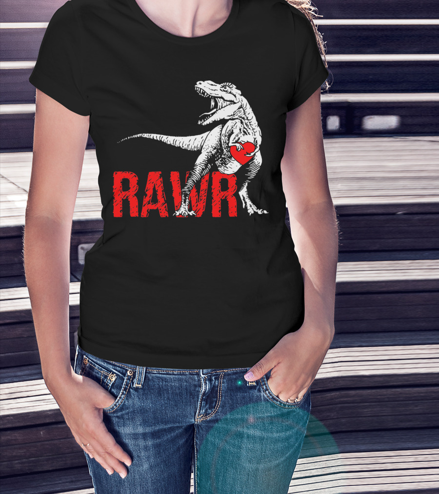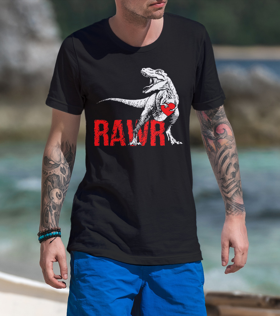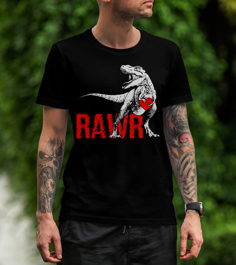 The RAWR Dinosaur Valentine Heart T-shirt is designed for everyday wear and a consistent fit. Fabric is pre-shrunk ring-spun cotton with durable stitching. See the size chart below for exact measurements.