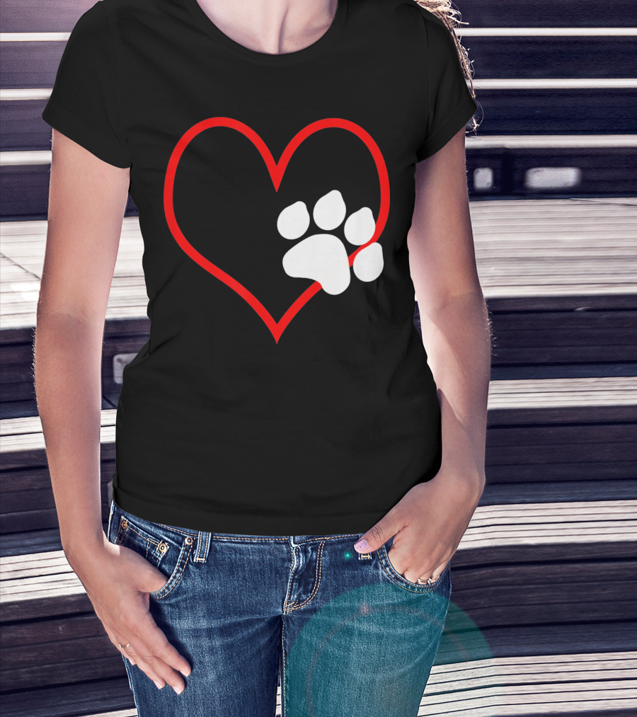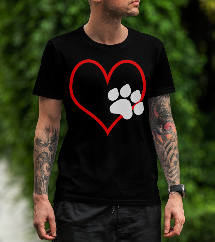 Dog And Cat Owner Valentine's Day Heart With Paw Prints T-Shirt