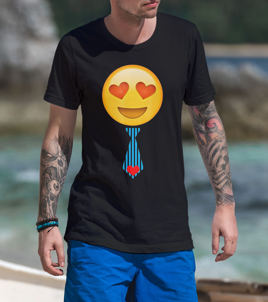 Emoji Heart Eyes Heart Tie Valentine T-Shirt