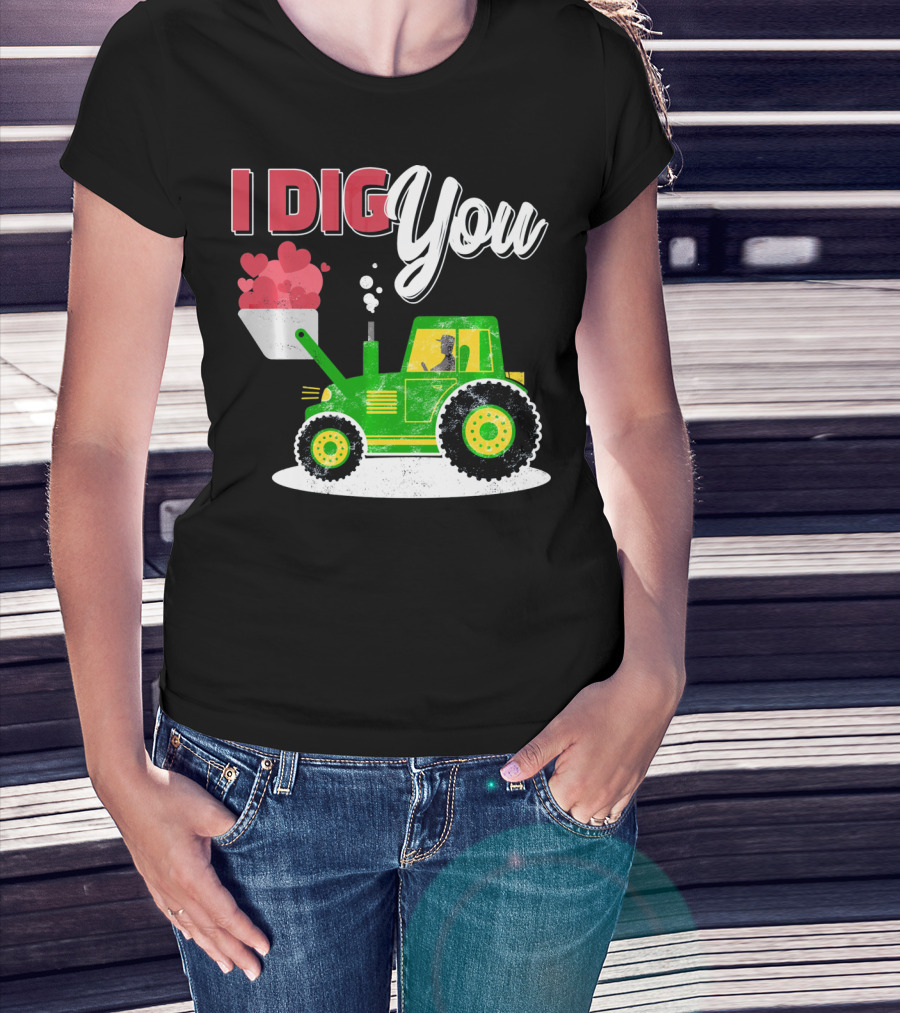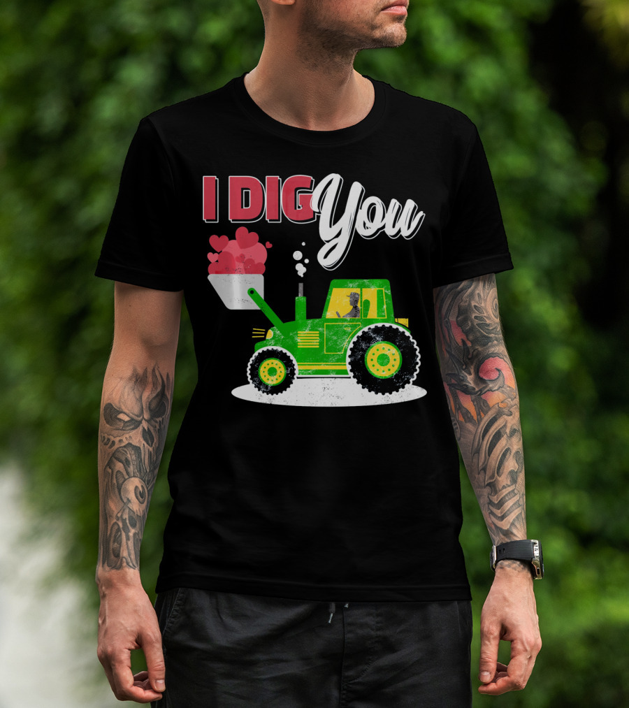 I Dig You Farmer Valentine's Day Tractor Hearts T-Shirt