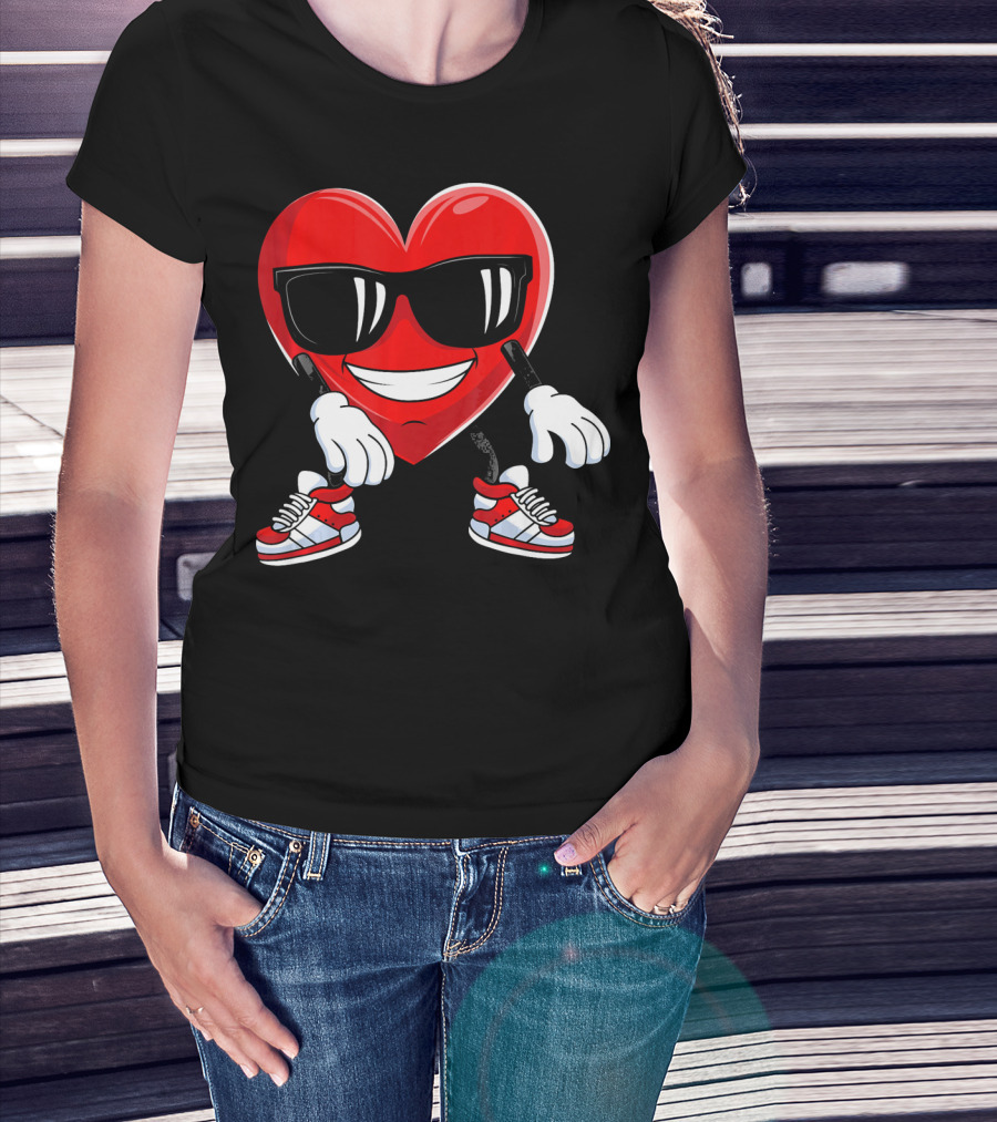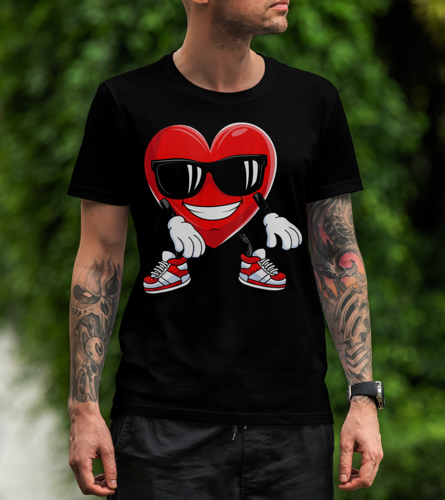 Floss Dance Heart Valentines Day Sunglasses Red Sneakers T-Shirt