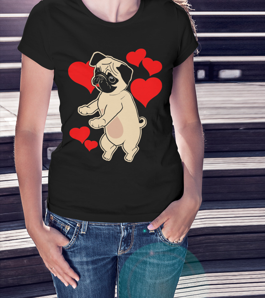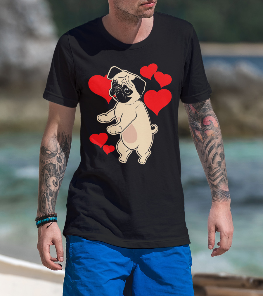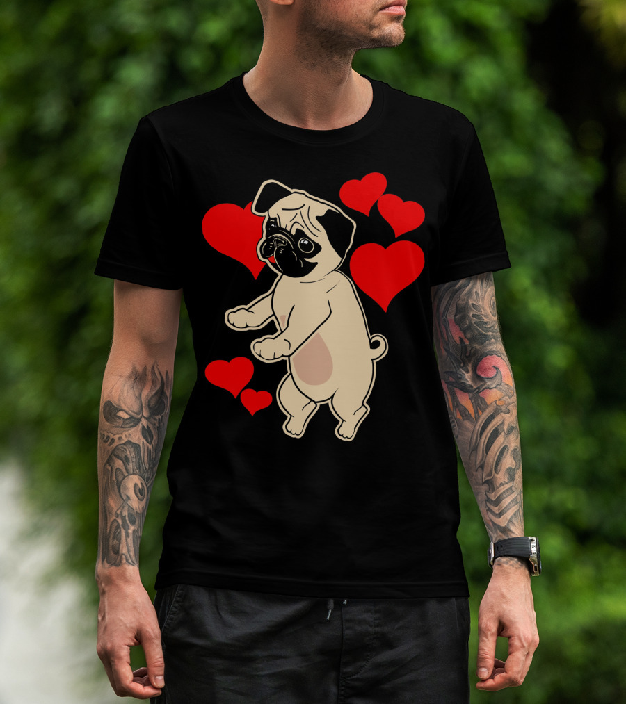 Pug Dancing With Hearts Valentine's Day T-Shirt