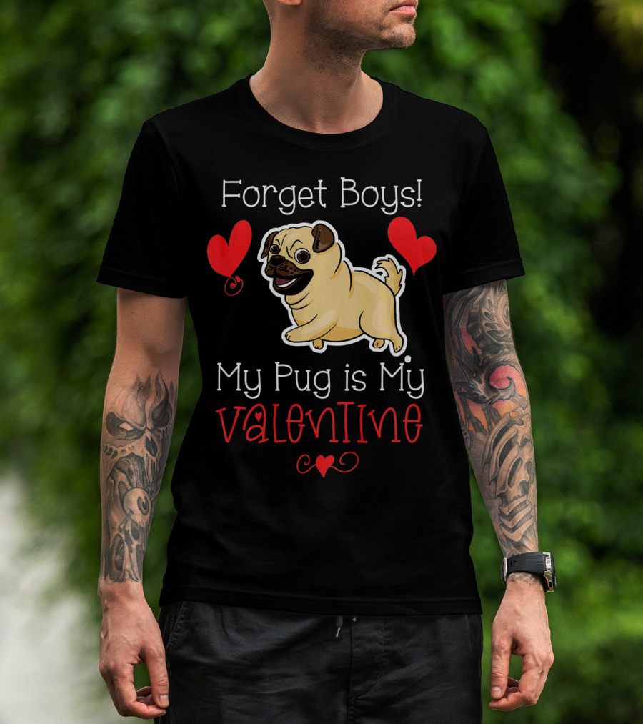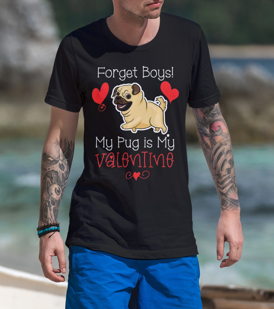 Forget Boys My Pug Is My Valentine Pug With Hearts T-Shirt