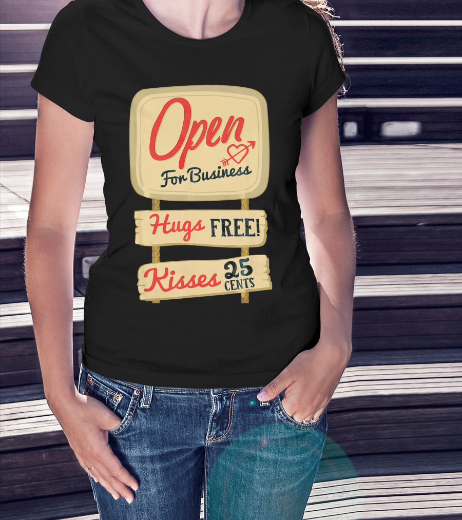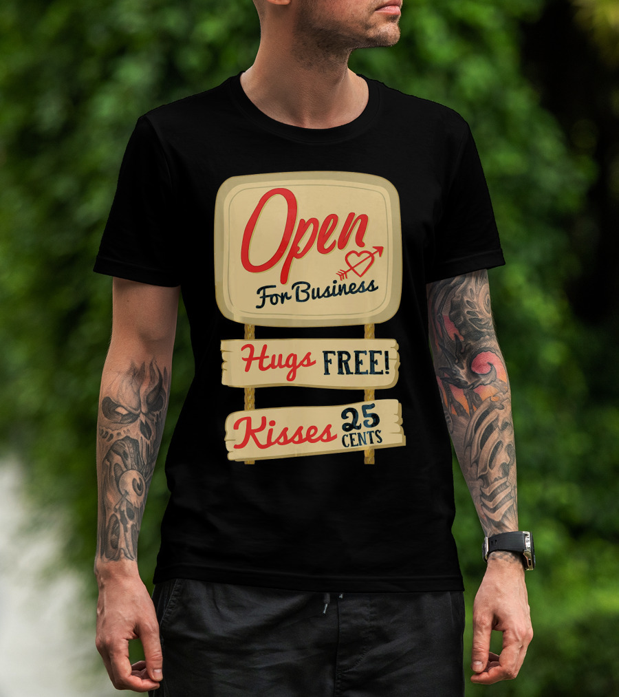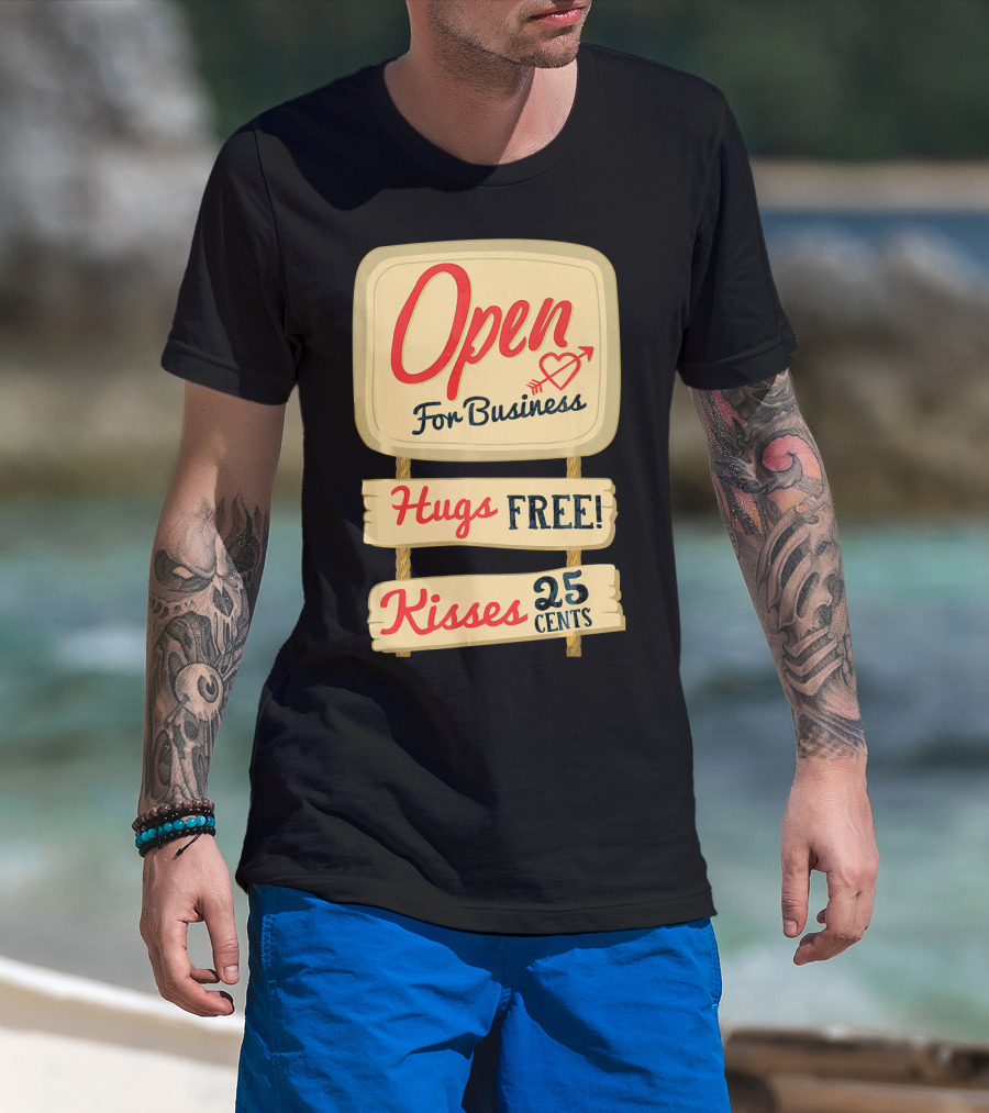 Open For Business Hugs Free Kisses 25 Cents Funny Valentine T-Shirt