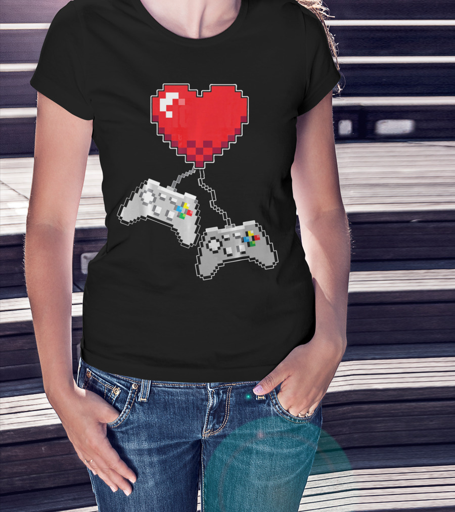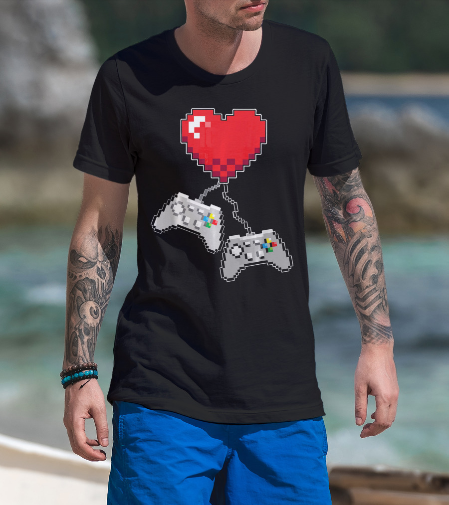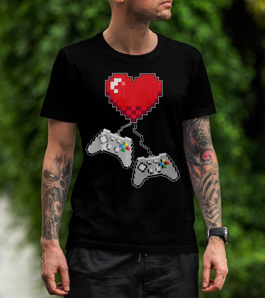 Pixel Heart Gaming Valentine Dual Controller Fun T-Shirt