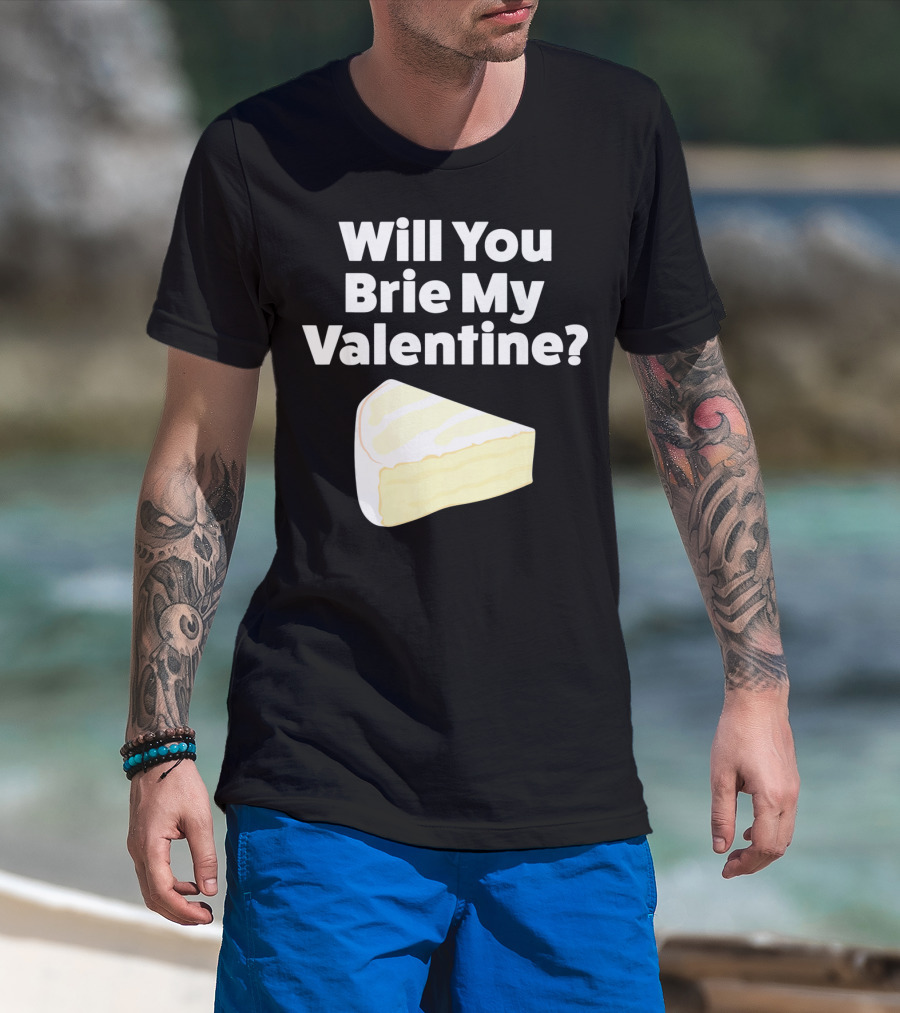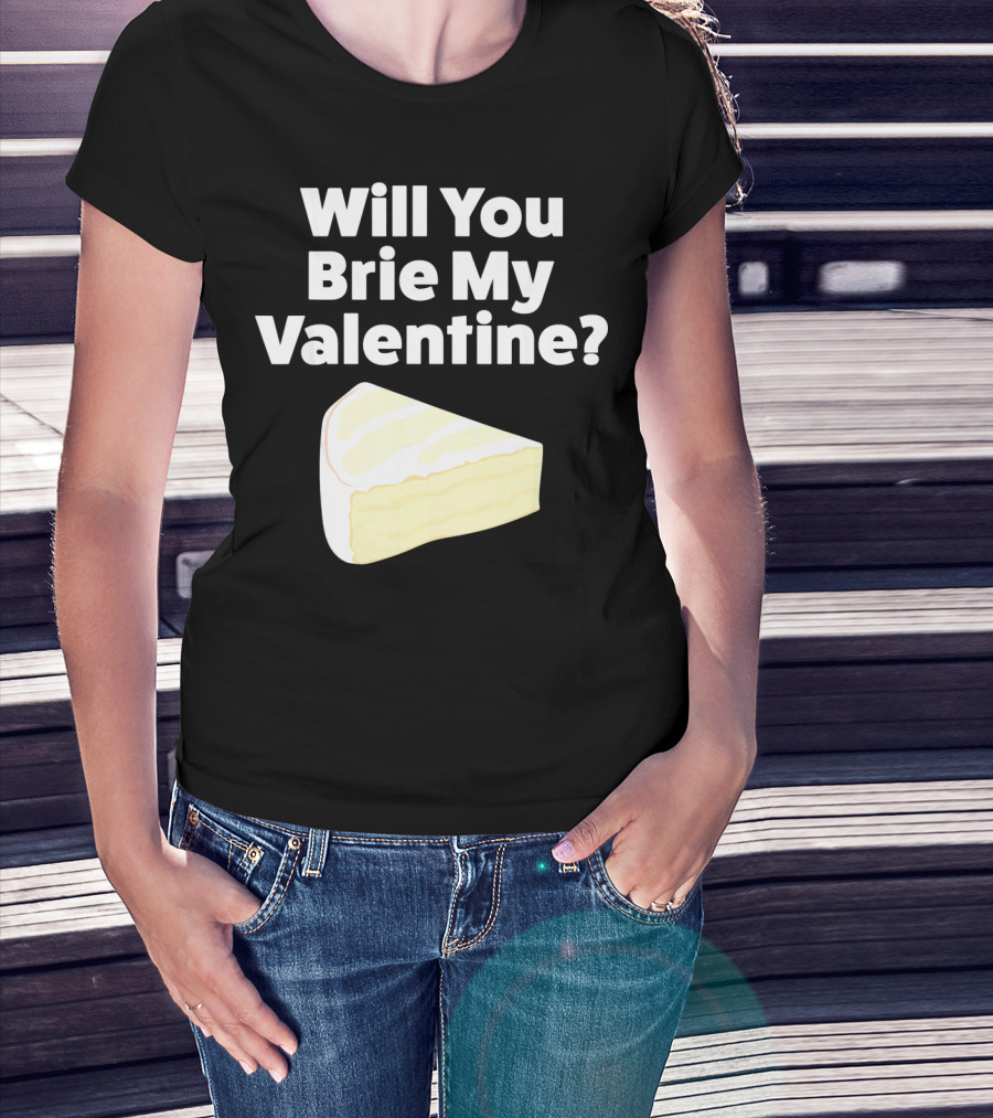 Will You Brie My Valentine Cheese Pun Valentine's Day Humor T-Shirt