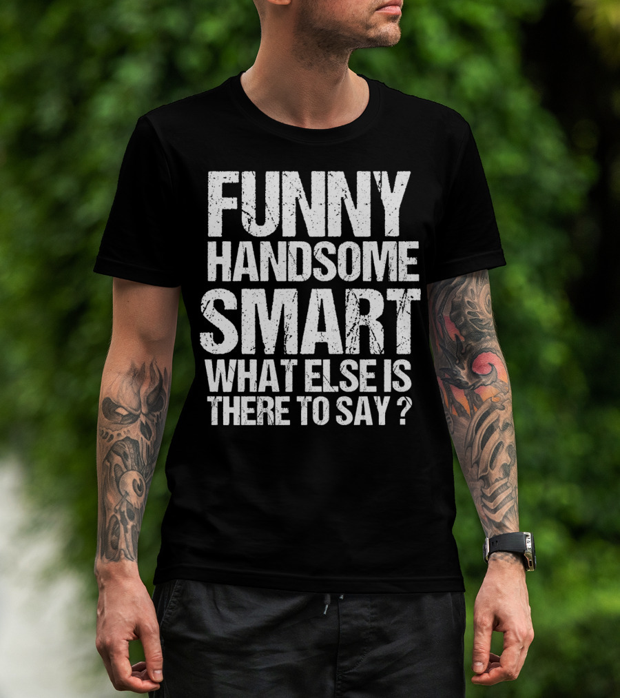 The Funny Handsome Smart What Else Is There to Say Valentine T-shirt is designed for everyday wear and a consistent fit. Fabric is pre-shrunk ring-spun cotton with durable stitching. See the size chart below for exact measurements.