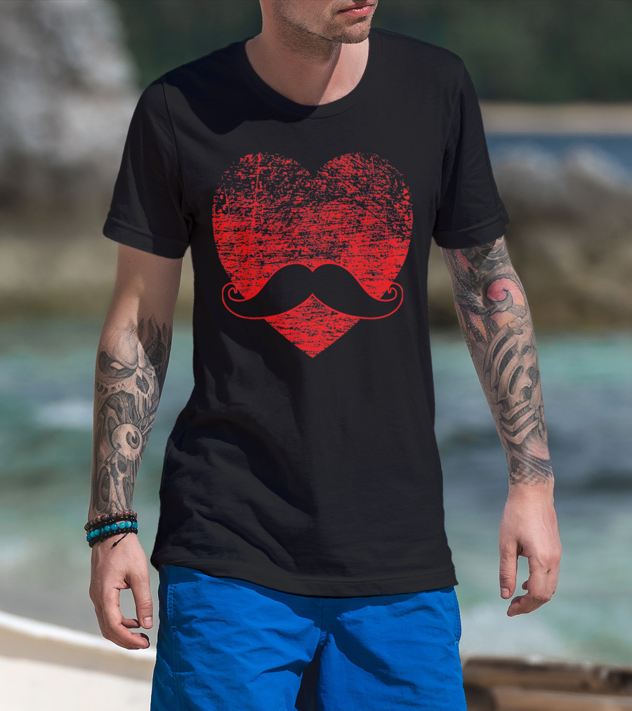 The Valentines Day Funny Mustache Heart T-shirt is designed for everyday wear and a consistent fit. Fabric is pre-shrunk ring-spun cotton with durable stitching. See the size chart below for exact measurements.