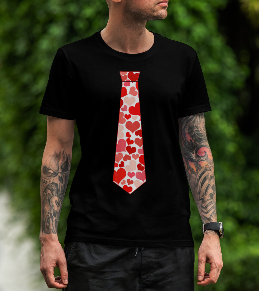 Funny Red Hearts Neck Tie For Valentine’s Day T-Shirt