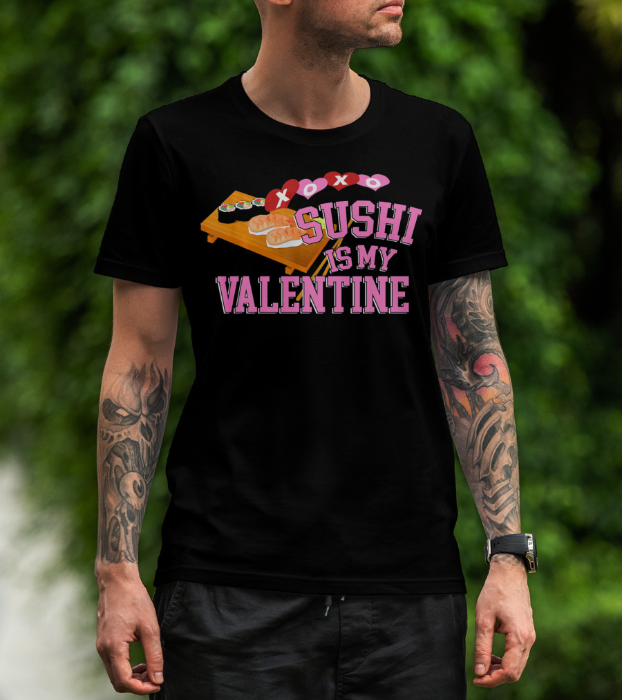 The XOXO Sushi is My Valentine T-shirt is designed for everyday wear and a consistent fit. Fabric is pre-shrunk ring-spun cotton with durable stitching. See the size chart below for exact measurements.