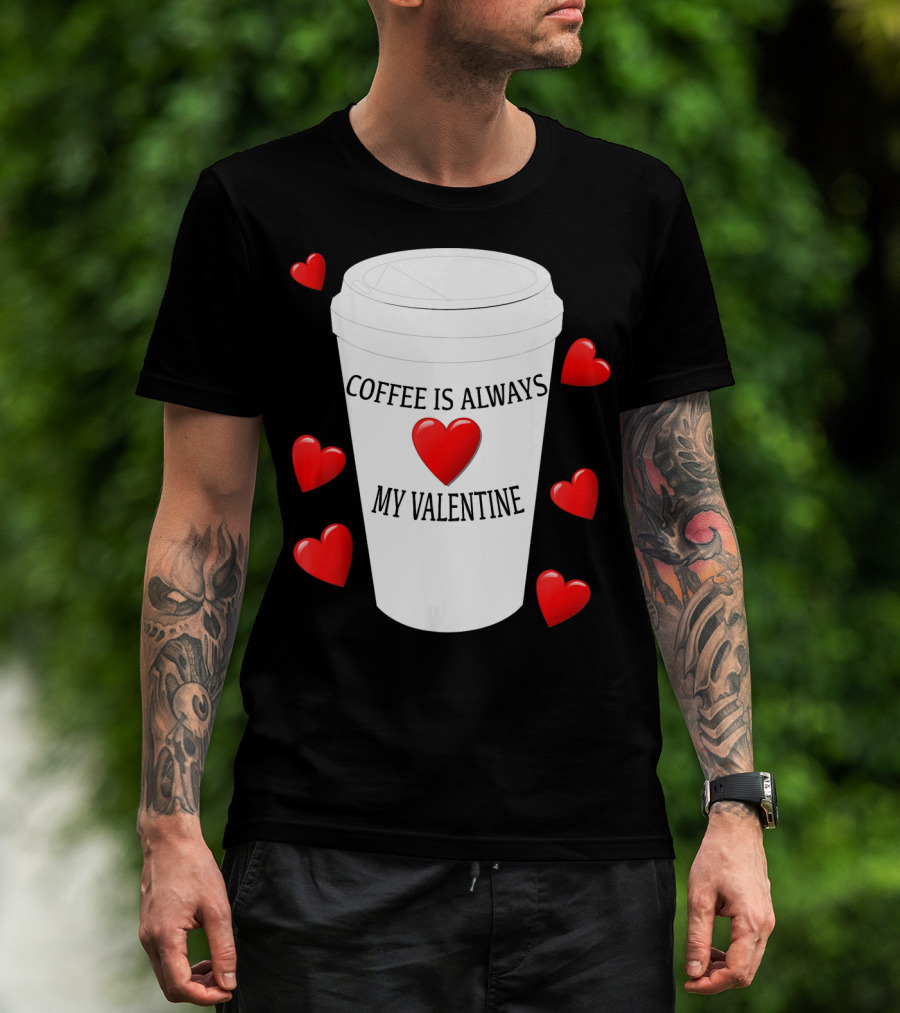 Coffee Is Always My Valentine With Red Hearts And Cup T-Shirt