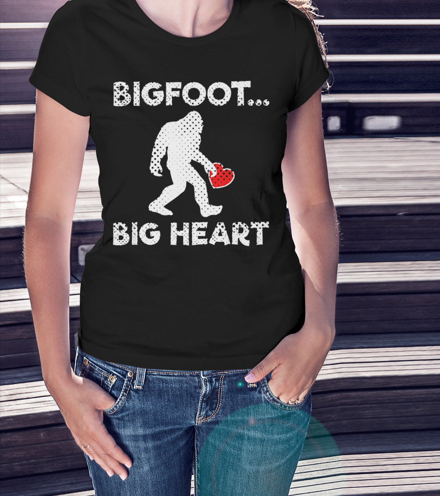 Bigfoot Big Heart Valentine's Day Funny Bigfoot Heart T-Shirt