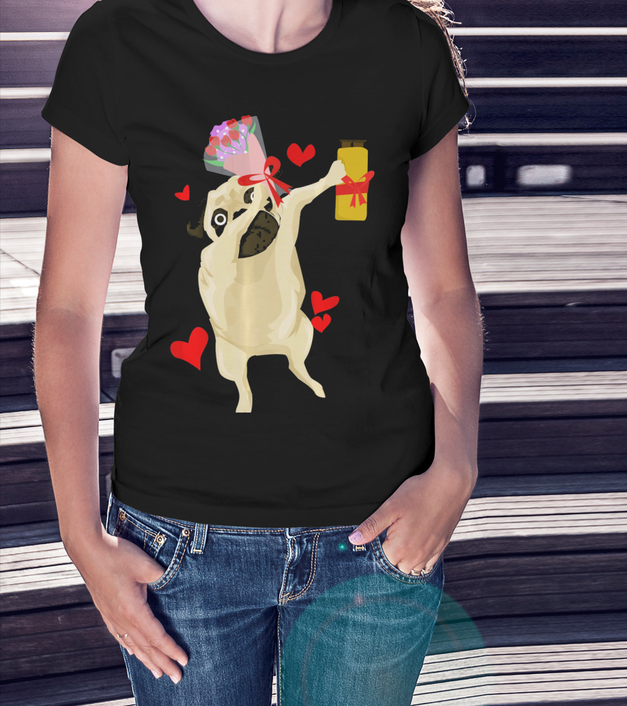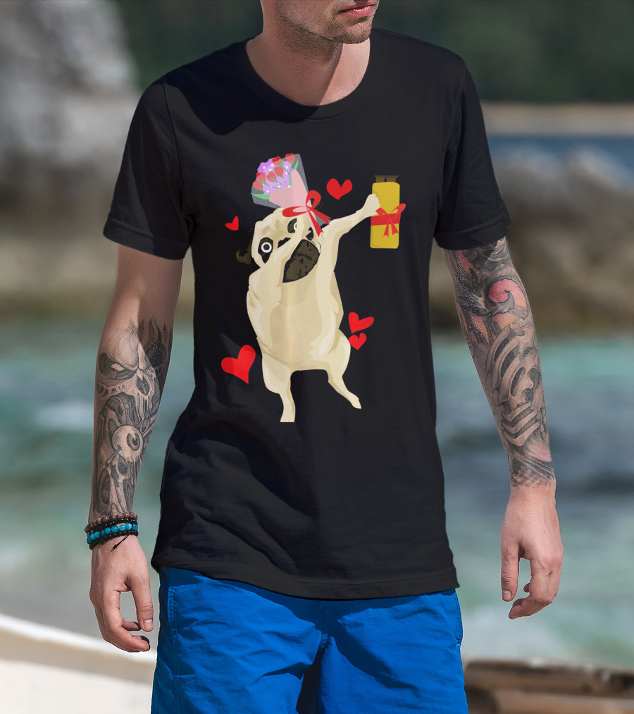 The Funny Valentine's Day Dog Bouquet Jar Hearts T-shirt is designed for everyday wear and a consistent fit. Fabric is pre-shrunk ring-spun cotton with durable stitching. See the size chart below for exact measurements.