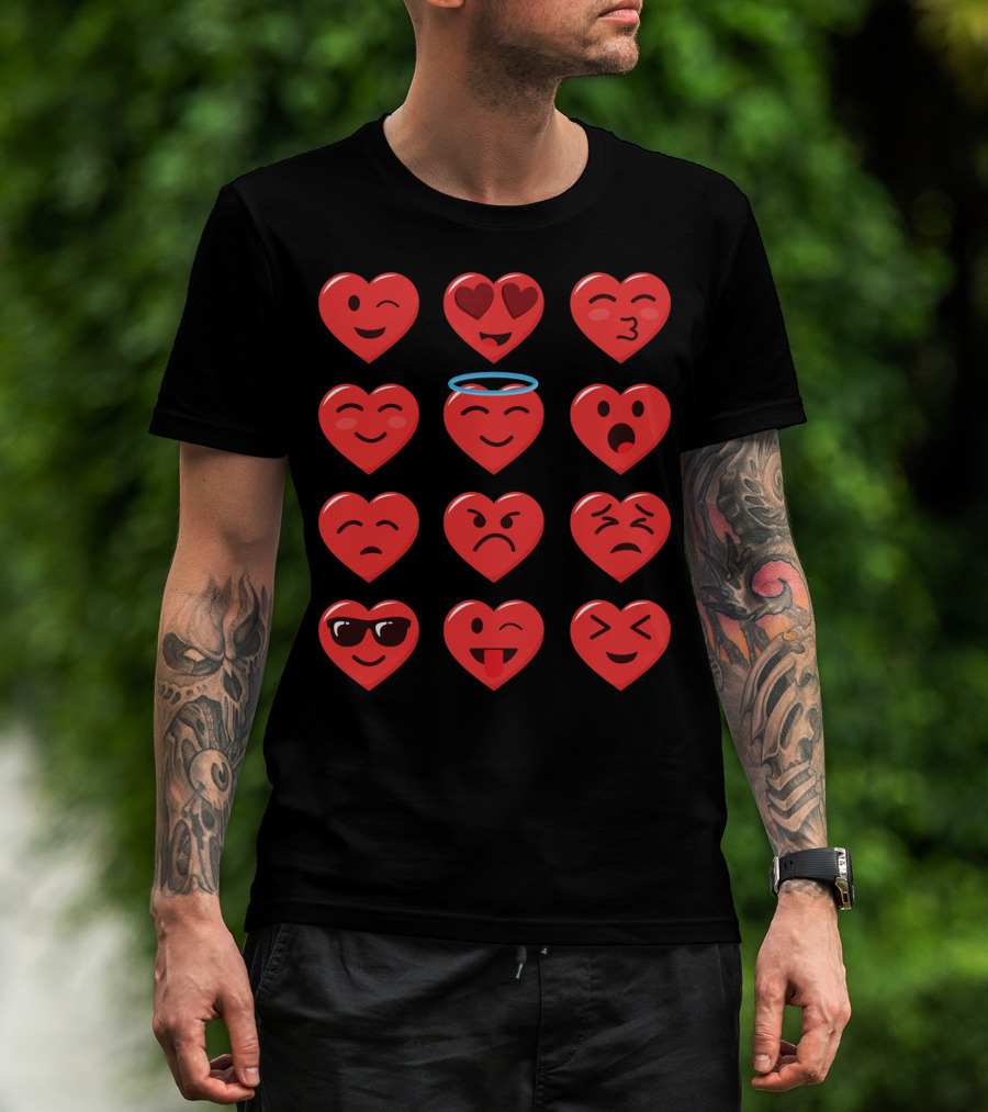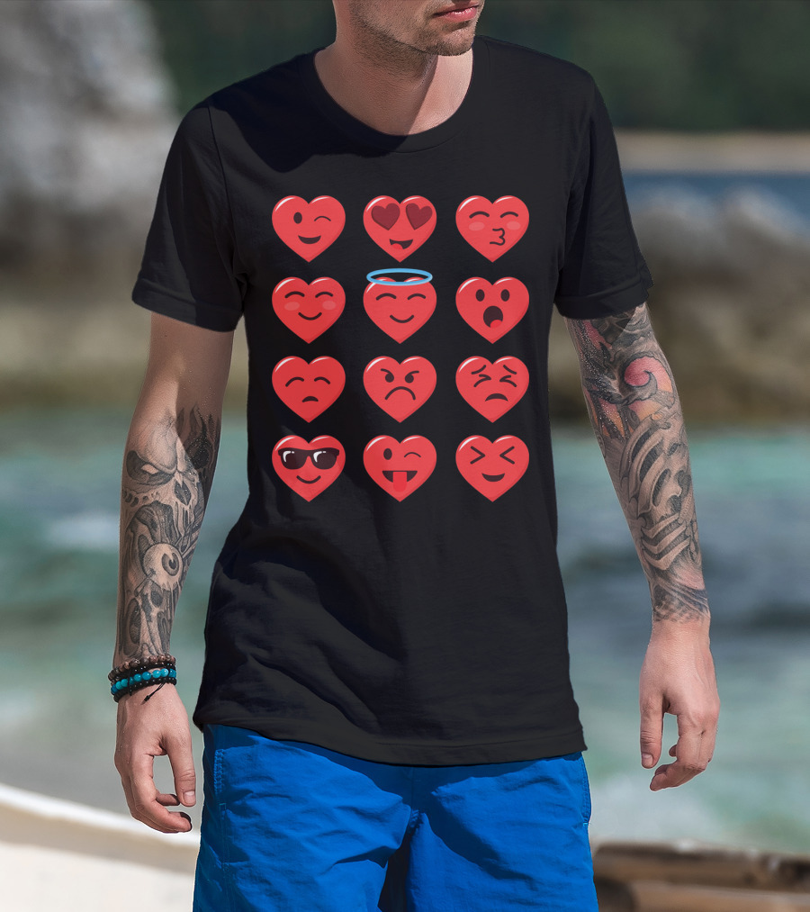 Funny Valentines Day Heart Emojico Winking Heart Eyes Angel Sunglasses Tongue Out T-Shirt