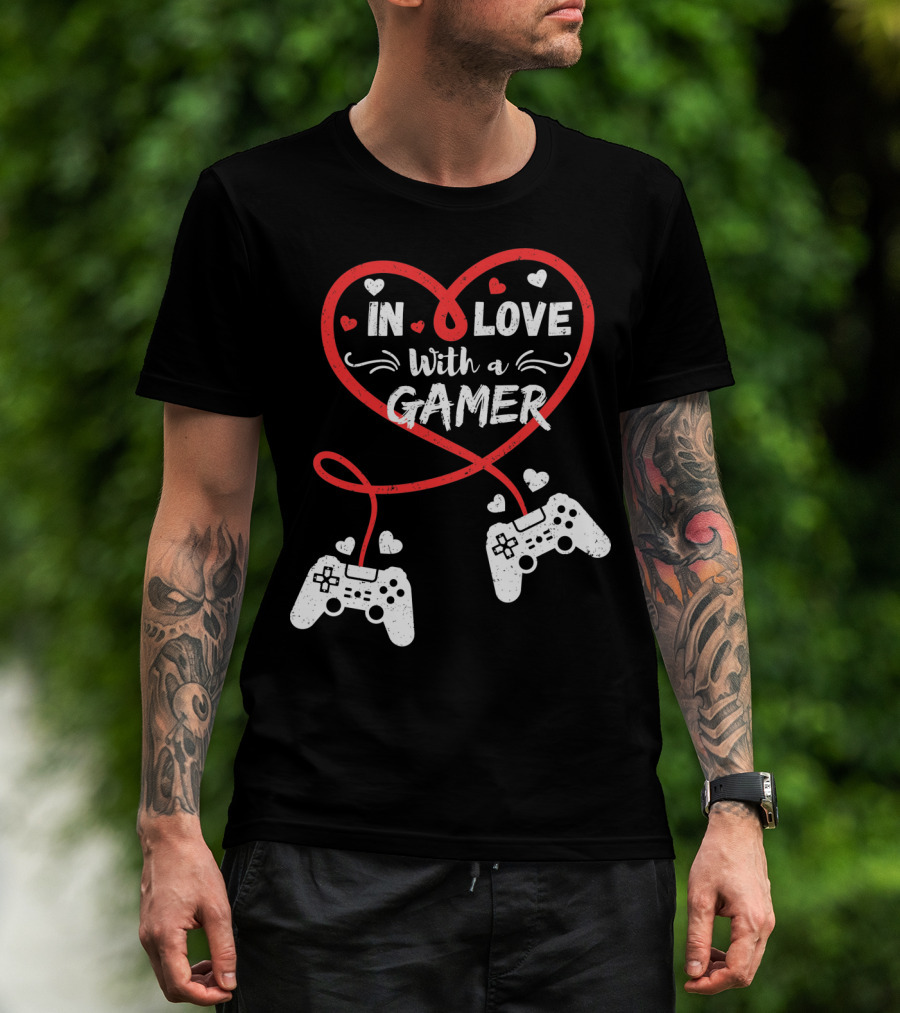 In Love With A Gamer Funny Video Gamer Valentines Day Long T-Shirt