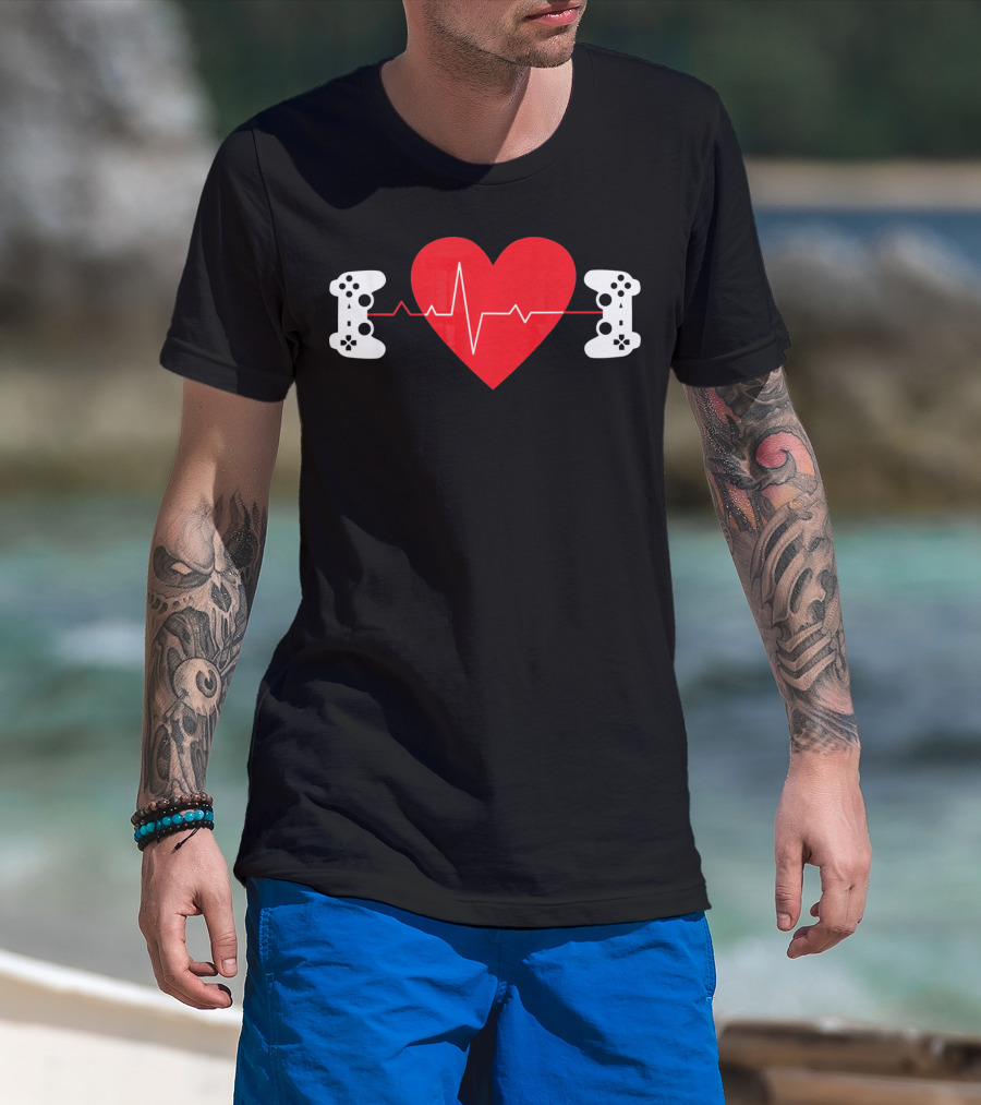 Gaming Valentine Hear Gamer Couple Controller Heartbeat T-Shirt