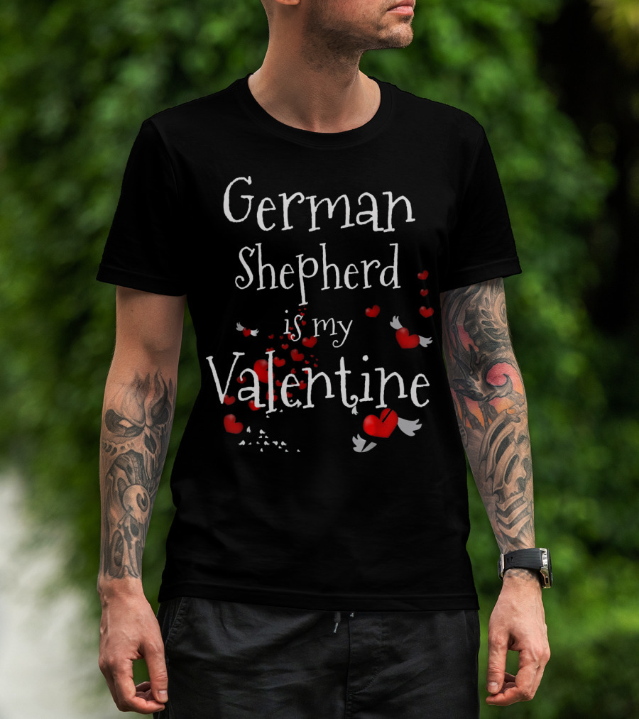 German Shepherd Is My Valentine With Hearts And Wings T-Shirt