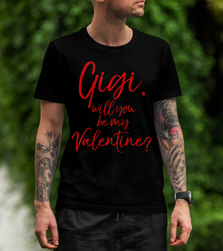 The Gigi Will You Be My Valentine T-shirt is designed for everyday wear and a consistent fit. Fabric is pre-shrunk ring-spun cotton with durable stitching. See the size chart below for exact measurements.