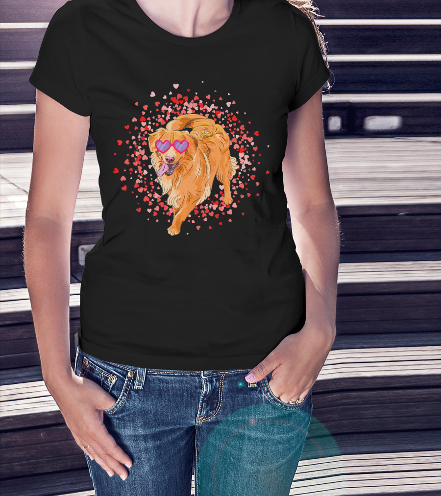 Golden Retriever With Heart Glasses Surrounded By Valentine's Day Hearts T-Shirt