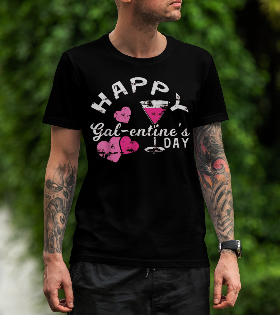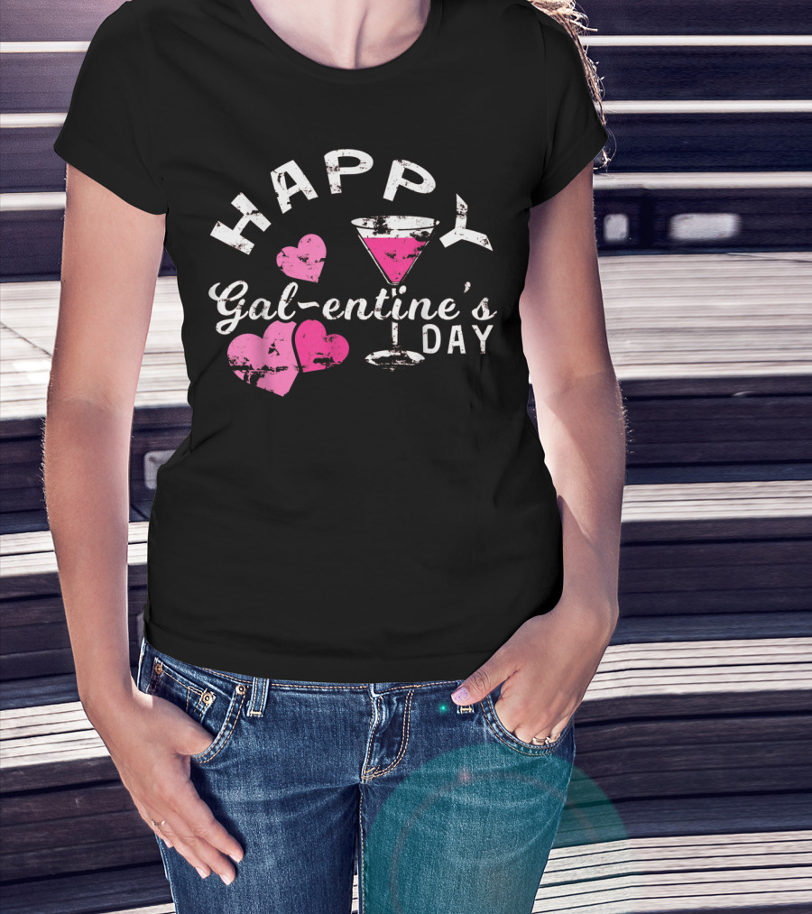 Happy Galentine's Day With Hearts And Cocktail Glass T-Shirt