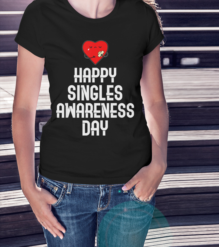 Happy Singles Awareness Day Funny Valent Heart T-Shirt