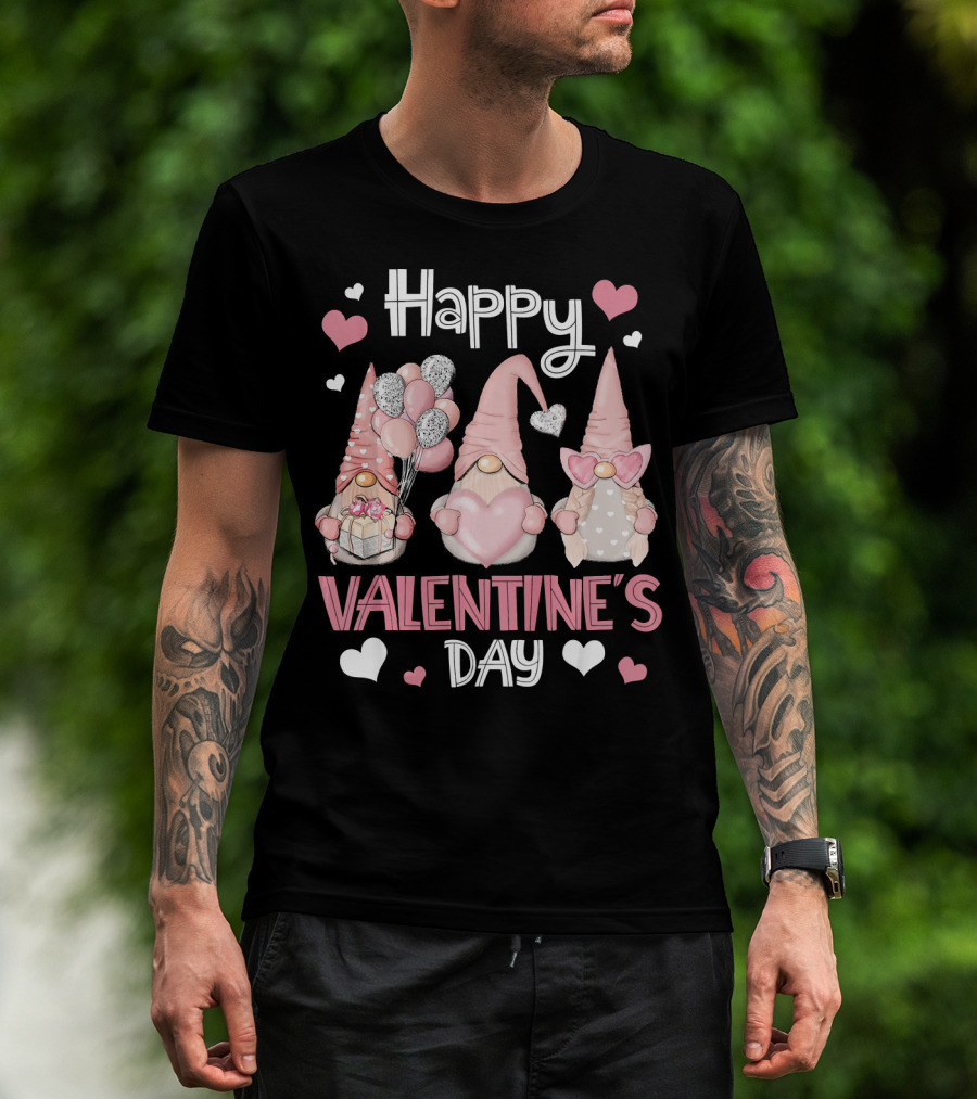 Happy Valentine's Day Nordic Gnomes With Hearts And Balloons T-Shirt